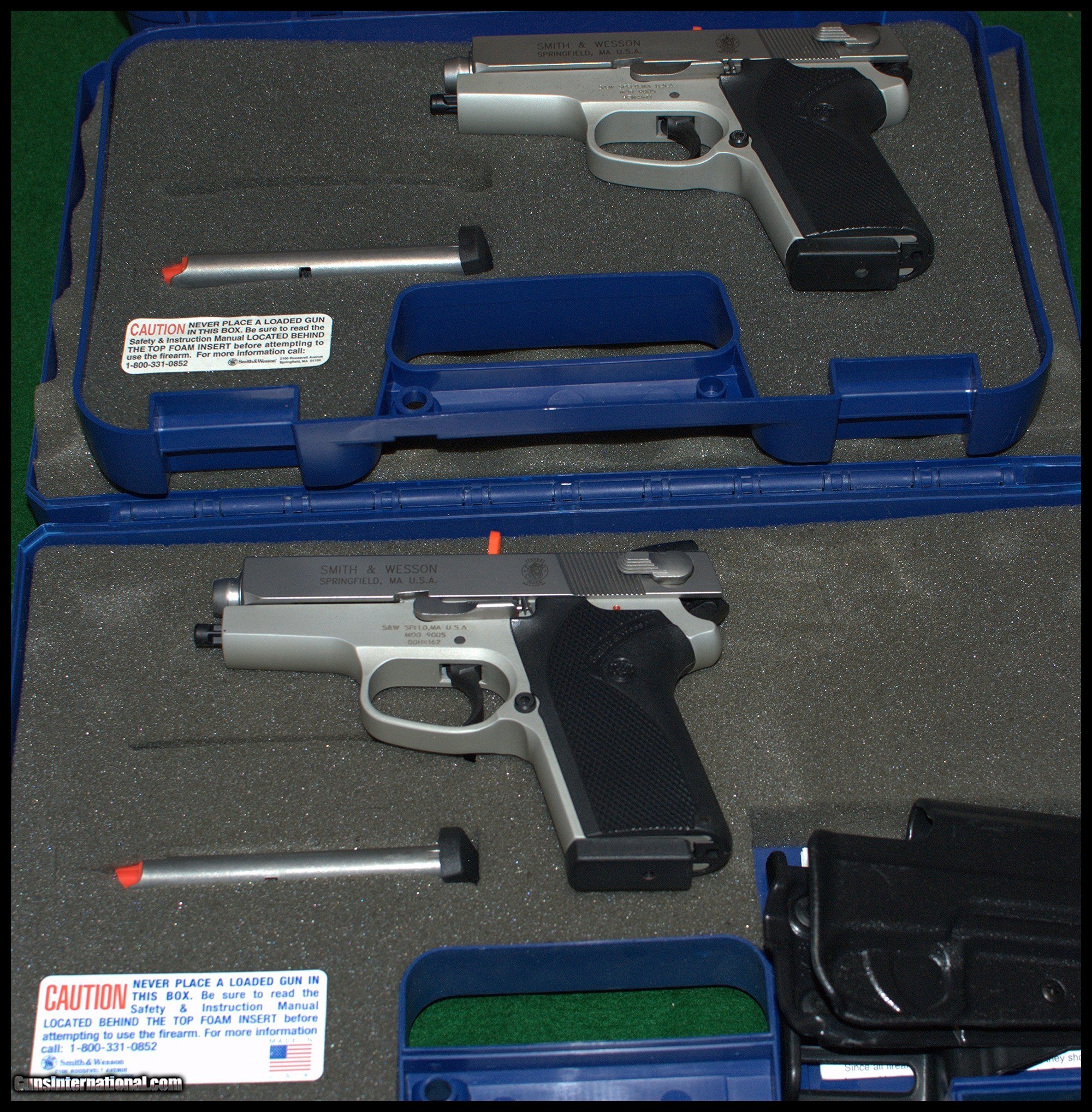Description: Pair of Smith and Wesson model 90BS 9mm nato semi-autos. Both are in original boxes, one includes a kydex holster. Priced to be sold as a pair. $700.00 for both! SOLD Handgun Caliber: 9x19mm Parabellum (9mm Luger, 9x19mm NATO) |