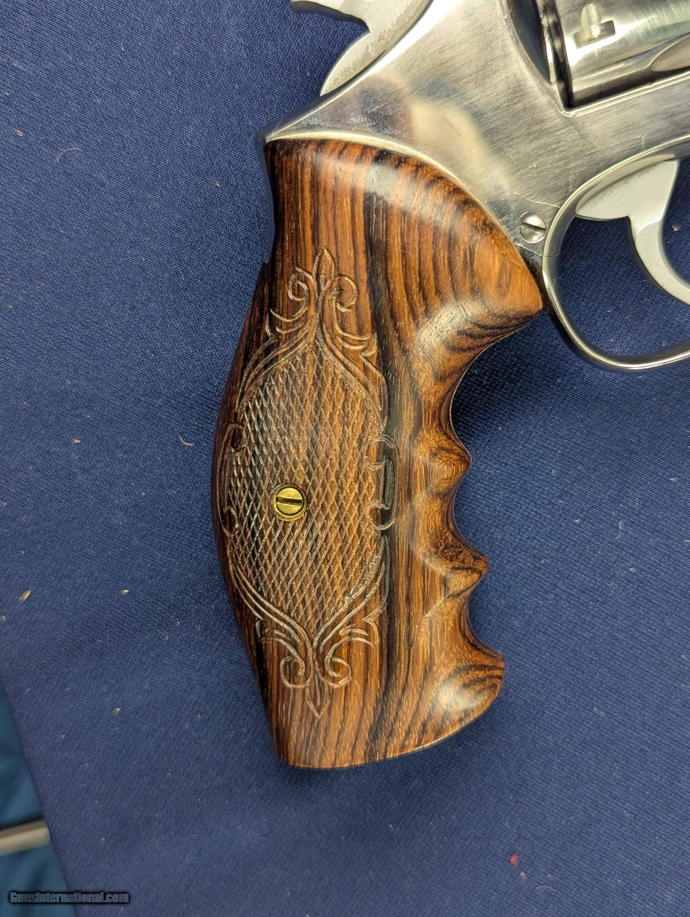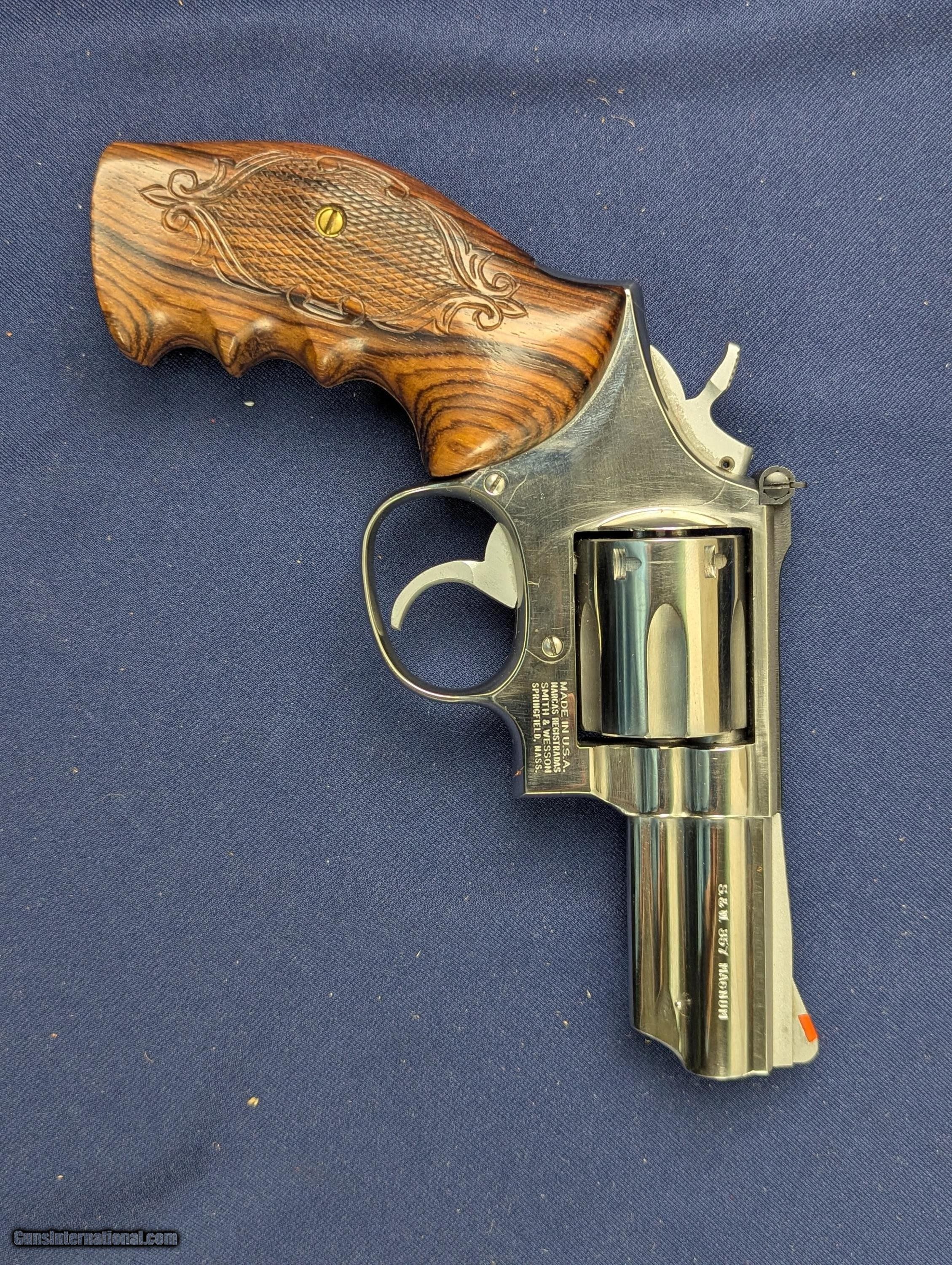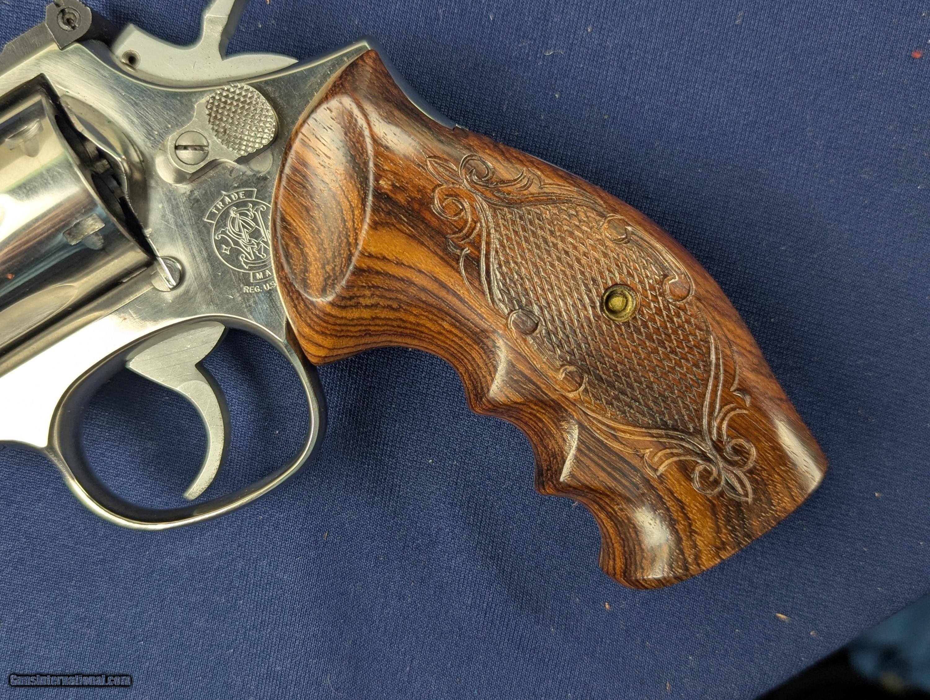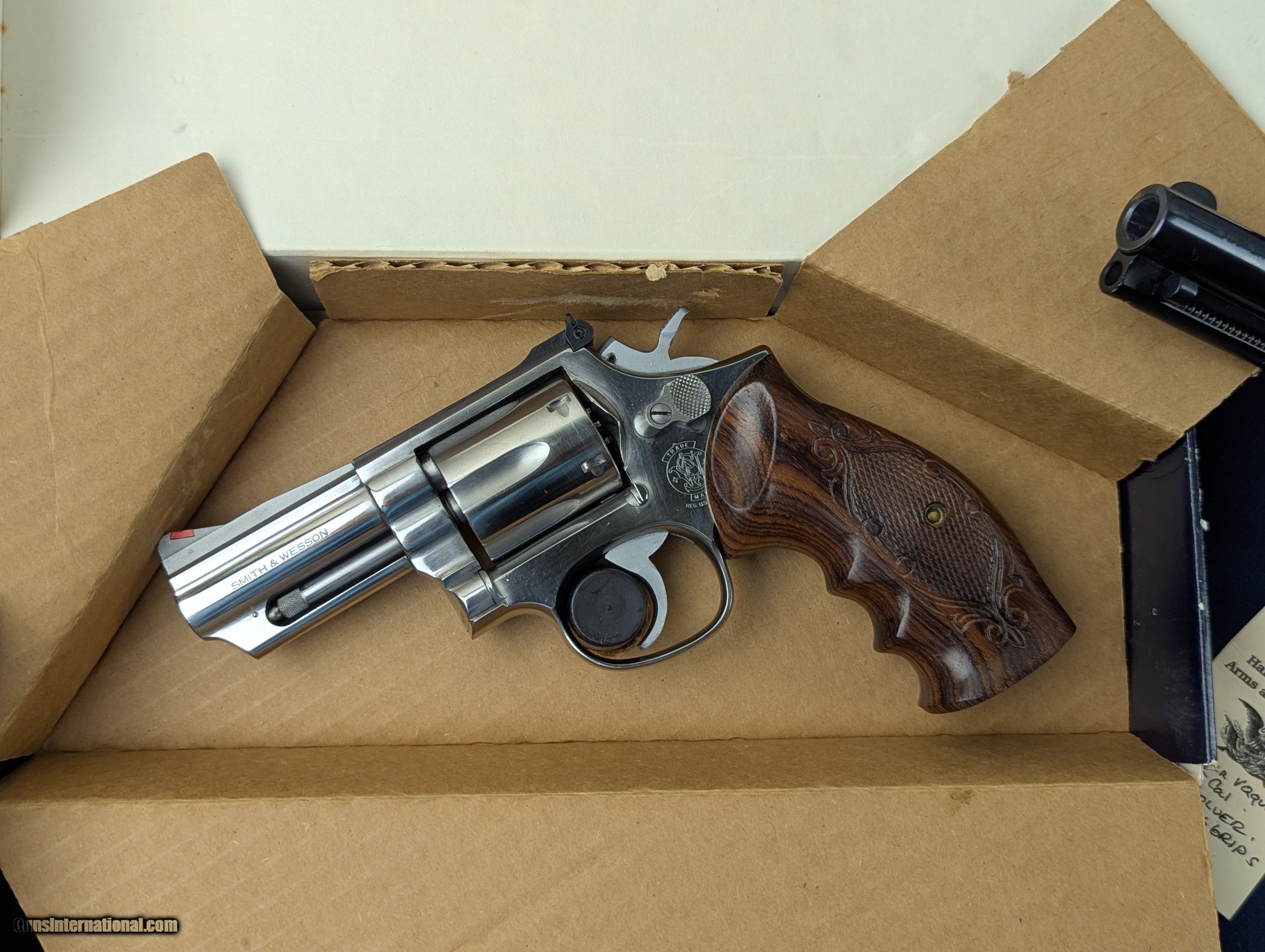 Description: Powerful S&W Model 66-2 .357 Revolver Special Factory Hi-Polish Finish Offered here for sale and just acquired is another highly collectible classic revolver from our galleries in Southport, Ct. The Smith & Wesson Model 66-2 is a stainless steel, double-action revolver chambered in .357 Magnum, with the ability to also fire .38 Special rounds. It's a variant of the classic Model 66, which itself is a stainless version of the famous S&W Model 19—a K-frame revolver designed for law enforcement and personal defense. This specimen, serial number AFK7923 is a K-frame (medium-sized) revolver chambered for the powerful .357 Magnum cartridge but also can fire .38 Special. Capacity: 6 rounds. This barrel length a compact 2.5”. Usually standard stainless steel finish this specimen was especially given a high polish “employee special” treatment at the Ruger factory and fitted with deluxe hard wood grips. We have shown in one image that there are telltale light use marks however since it is a high polished finish it can easily be smoothed out if desired. It has a an adjustable rear sight, red ramp front sight and is in double-action/single-action (DA/SA). The 66-2 revision was introduced in 1982 and ran until 1986. Notable Changes in the Model 66-2: