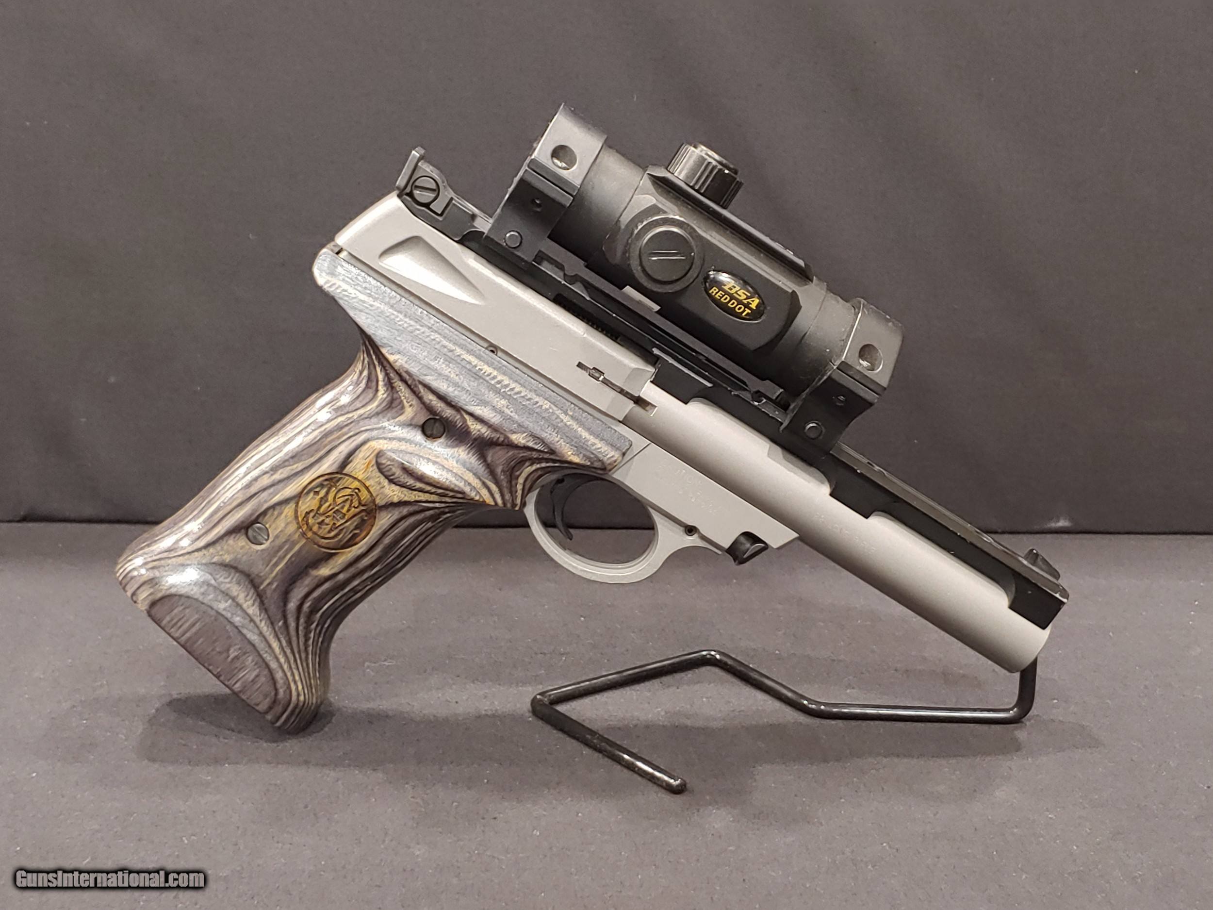 Description: The Stainless steel 22-S Model was introduced in January 1997 as a low-cost semi-automatic is intended to be a general-purpose pistol for target shooting, handgun hunting, and recreation. The large BSA Red Dot scope adds to the overall value as well as three magazines! Pre-Owned - Smith & Wesson Model 22S - .22 LR Pistol