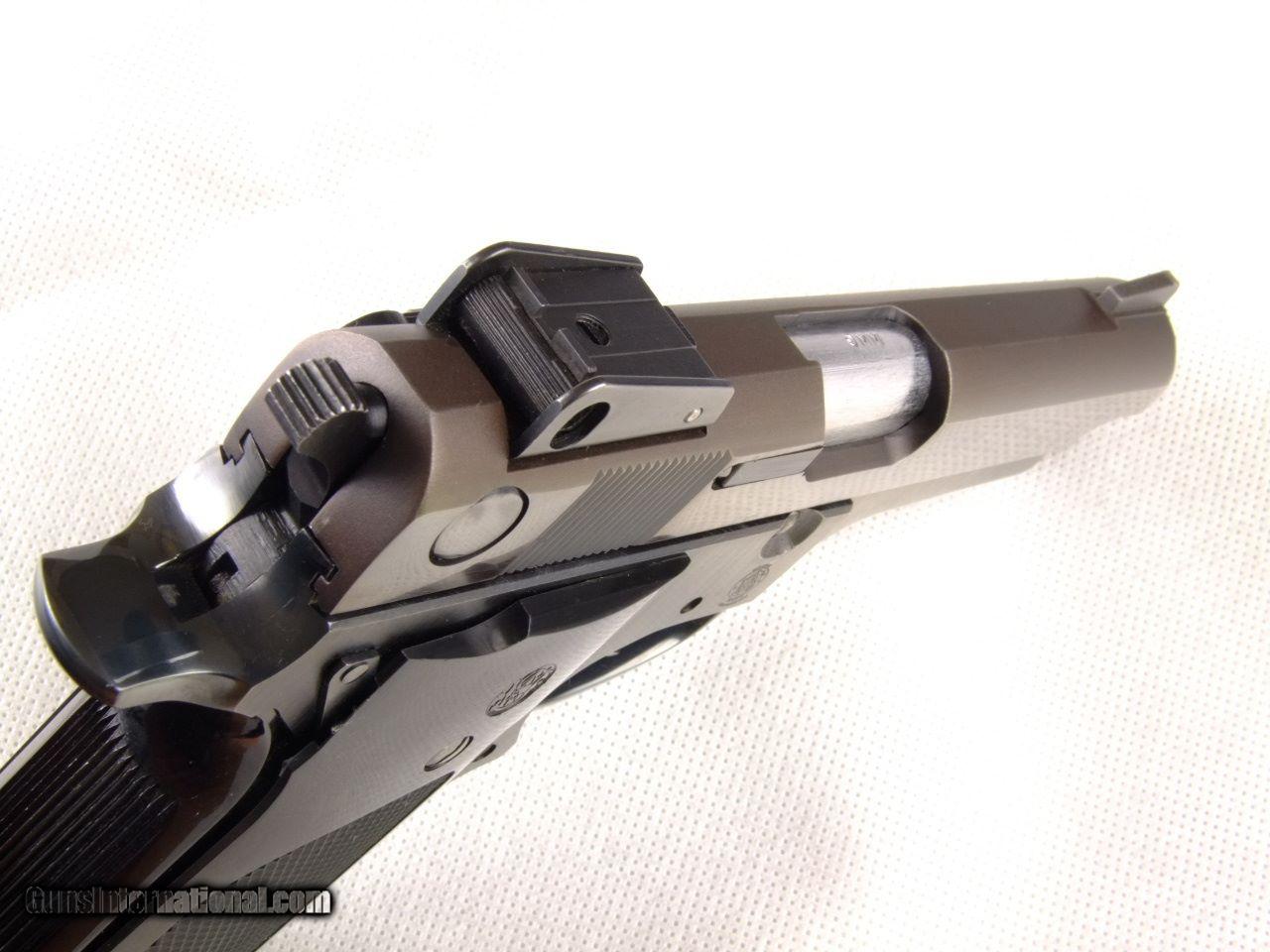Description: Mint Condition Rare Smith and Wesson Model 559 9mm Semi-Automatic Pistol. Mint overall condition with just a few minor handling marks on the right side of the slide and even fewer on the left side. The grips are likewise in Mint condition with just the slightest of handling marks. There are some minor handling marks on the the backstrap which are more evident to the camera than the naked eye. Very little evidence this has ever been fired. Only 8973 blue finish Model 559 pistols were produced. Sorry, no box, etc. No sales where prohibited. SOLD Manufacturer: Smith and Wesson Model: Model 559 Serial Number: A672725 Caliber Info: 9mm Bore: Mint Condition: Mint Action: Semi-Auto Finish: Blue Sights: Adjustible Manufacture Date: 1981 Item Location: Rio Rancho, NM |