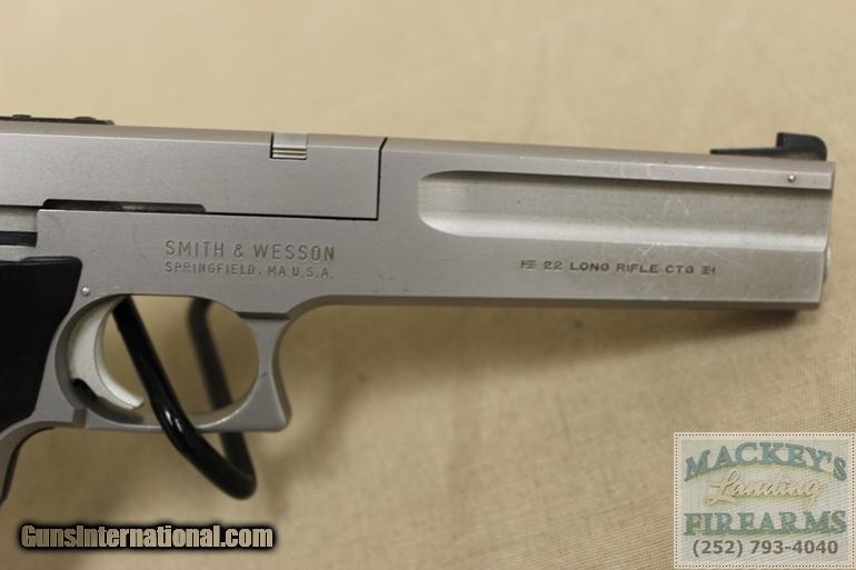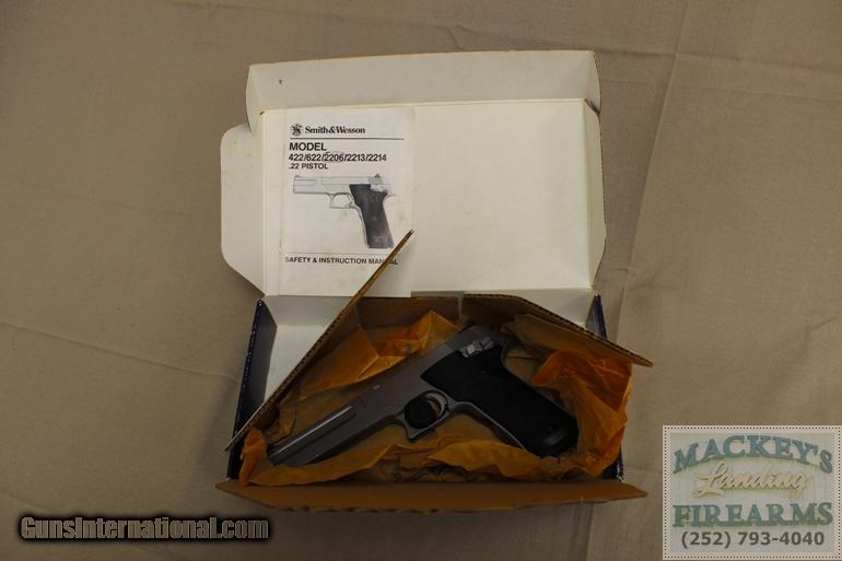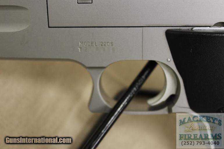 Description: This Stainless Steel Smith & Wesson Model 2206 has a 6" barrel, front strap mag release, external safety, and rear slide serrations. It comes with the original box and instruction manual. Call (252)793-4040 for more information. Please reference our inventory #45527. FFL required for shipping. No shipping outside of the US. SOLD |