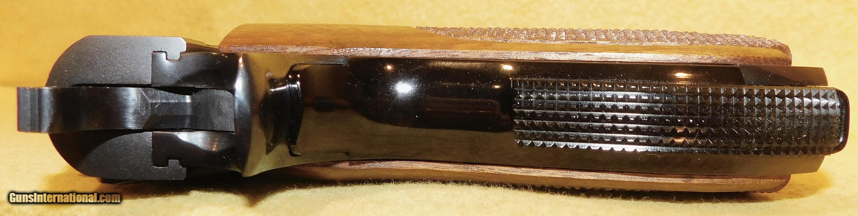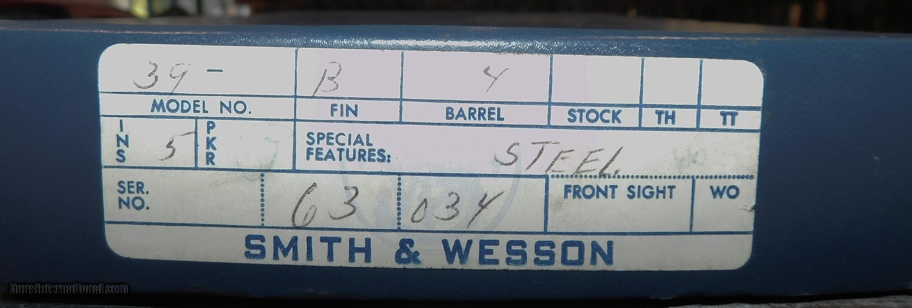 Description: S&W 39 (STEEL) (UNFIRED) IN 9MM CAL., WITH 4" BARREL. COLOR BLUE. CONDITION 98%+ LIKE NEW. SERIAL NUMBER 63034. S&W MODEL 39 (STEEL FRAME) (UNFIRED) (CIRCA 1966) ONLY 927 WERE ASSEMBLED, THIS MODEL 39 STEEL FRAME IS UNFIRED AND COMES WITH THREE FACTORY MAGAZINES TWO OF WHICH HAVE NEVER BEEN UNWRAPPED, UNOPENED CLEANING KIT, PARTS LIST, ORIGINAL WAXED PACKING PAPER, ORIGINAL HINGED BLUE BOX, THIS IS A ONCE IN A LIFETIME FINED, 98%+ LIKE NEW OVERALL CONDITION, OUR STOCK # D8025 Price: $5,200.00 Contact Seller |