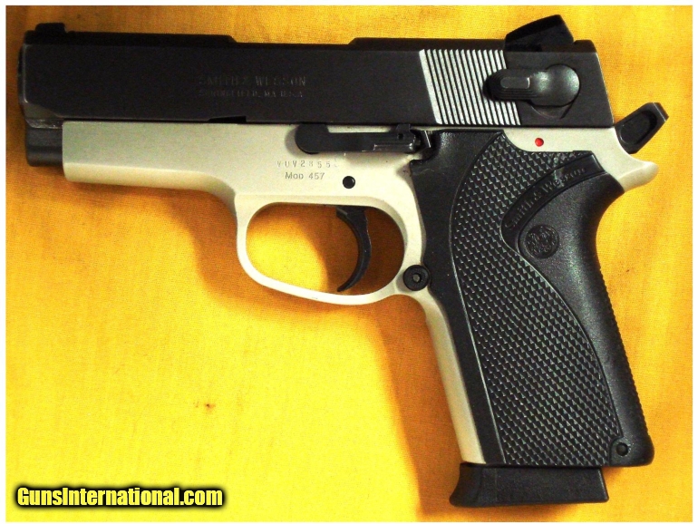 Description: S&W model 457 in .45 ACP CAL., with 3 3/4" barrel. Color SILVER/BLACK. THIS 457 IS IN EXC. OVERALL CONDITION GRADING 98% AND INCLUDES ONE SEVEN ROUND MAGAZINE. Condition 98%. Serial number . SOLD |