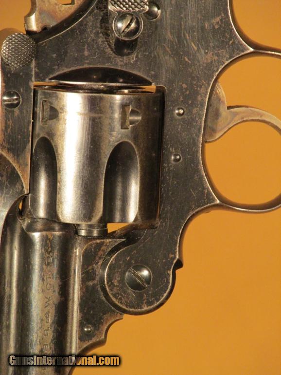 Description: S&W DA PERFECTED MODEL, SN 471XX, 4" bbl., 38 CF, matching nos. on cyl. & frame, exc. checkered hard rubber S&W grips, VG bore, 85% blue. (F.F.L. required) SOLD |