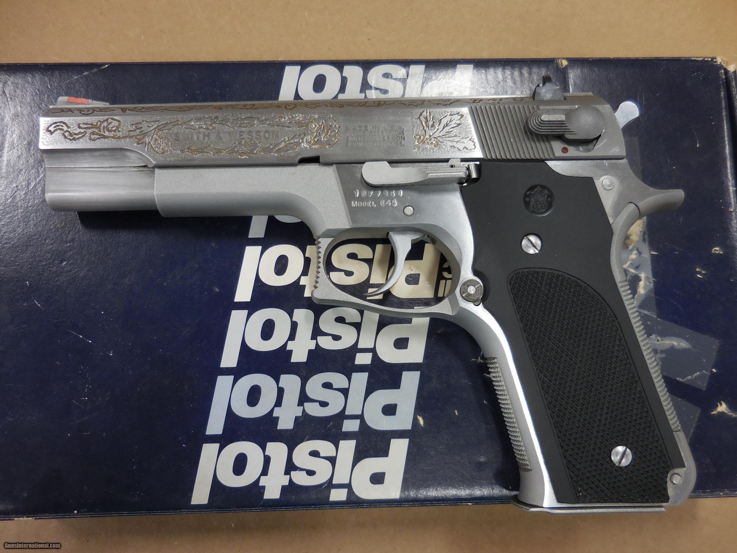 S&W MOD 645 STAINLESS W/ ENGRAVED SLIDE 45ACP 5" CHEAP