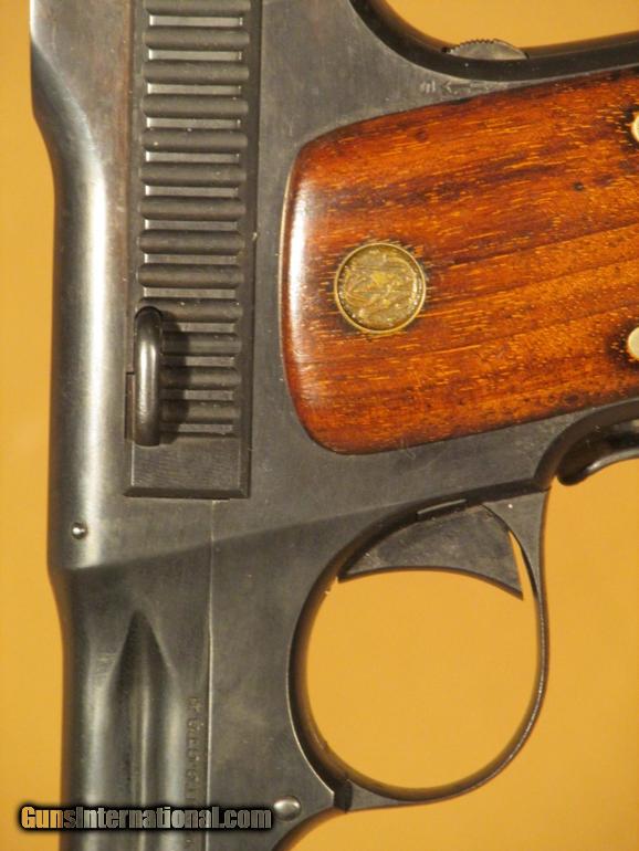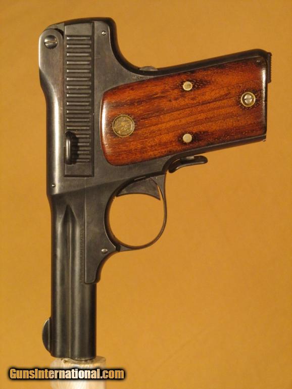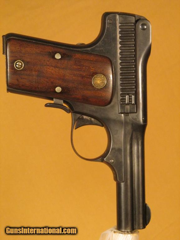 Description: S&W MODEL 1913, 35 auto, SN 63XX, 98% blue, VG S&W wood grips, exc. bore, markings are exc., left side of bbl. marked "35 S&W auto ctg.". (F.F.L. required) SOLD |