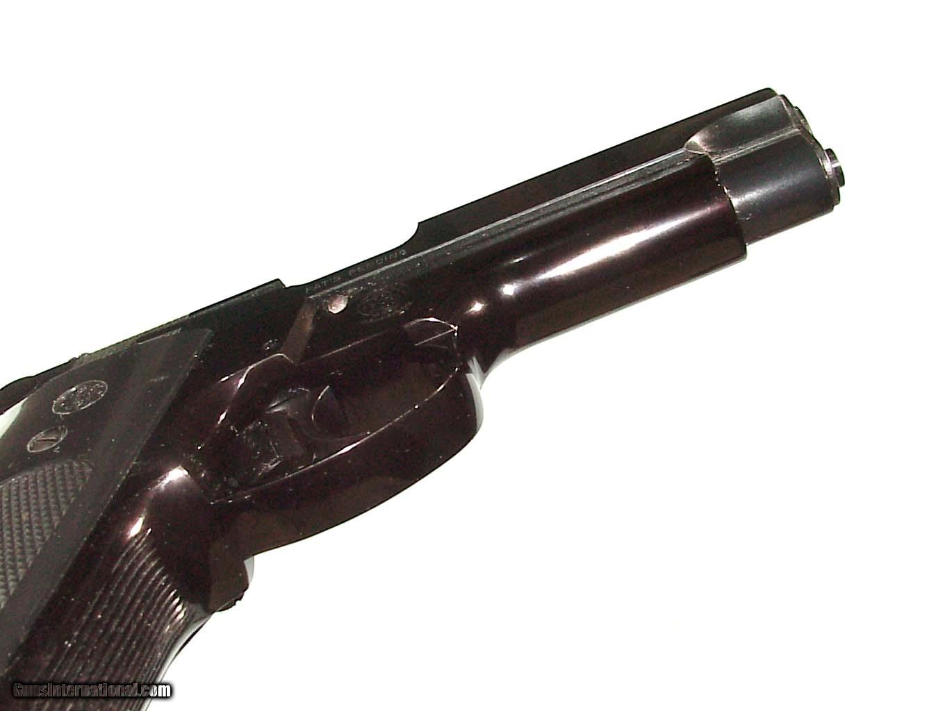 Description: 9mm caliber, finished blue with black checkered plastic grips. Double/single action with de-cocking safety. Double stack magazine. As new, unused in it's original factory box with extra magazine, cleaning tools and oiled paper. SOLD |