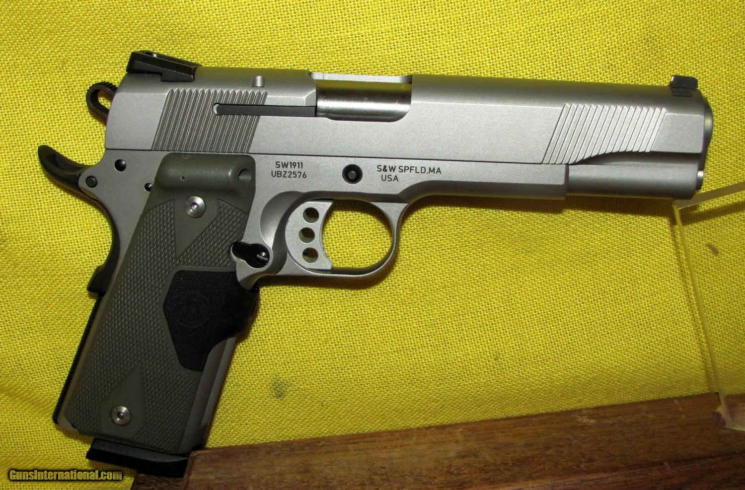 Description: S&W model S&W 1911in .45 ACP CAL., with 5" barrel. Color STAINLESS STEEL. THIS SW1911 IS IN UNFIRED CONDITION, COMES WITH ORIGINAL HARD CASE AND PAPERS, EXTRA EIGHT ROUND FACTORY MAGAZINE, S&W LAZAR GRIPS. Condition AS NEW. SOLD |