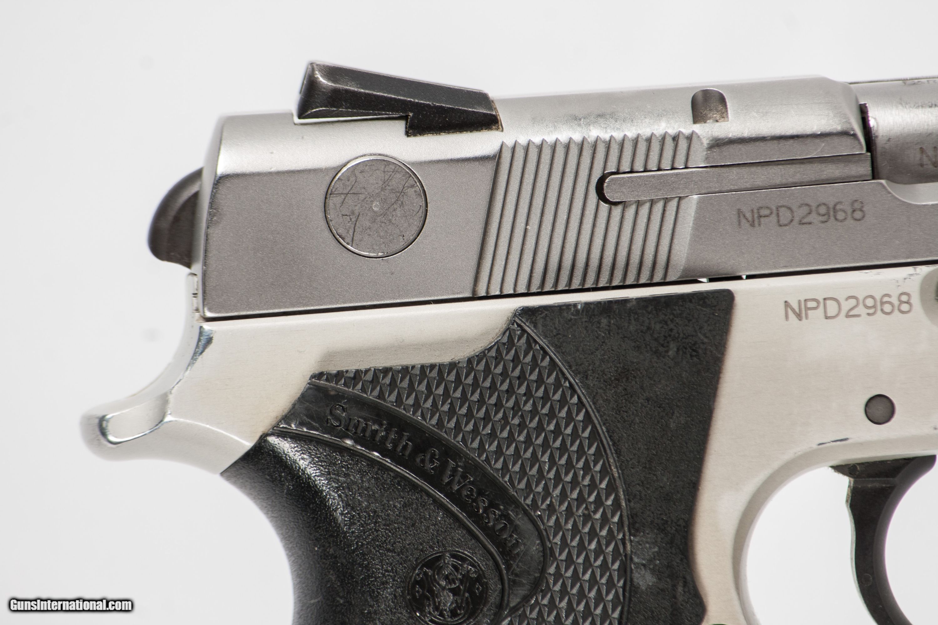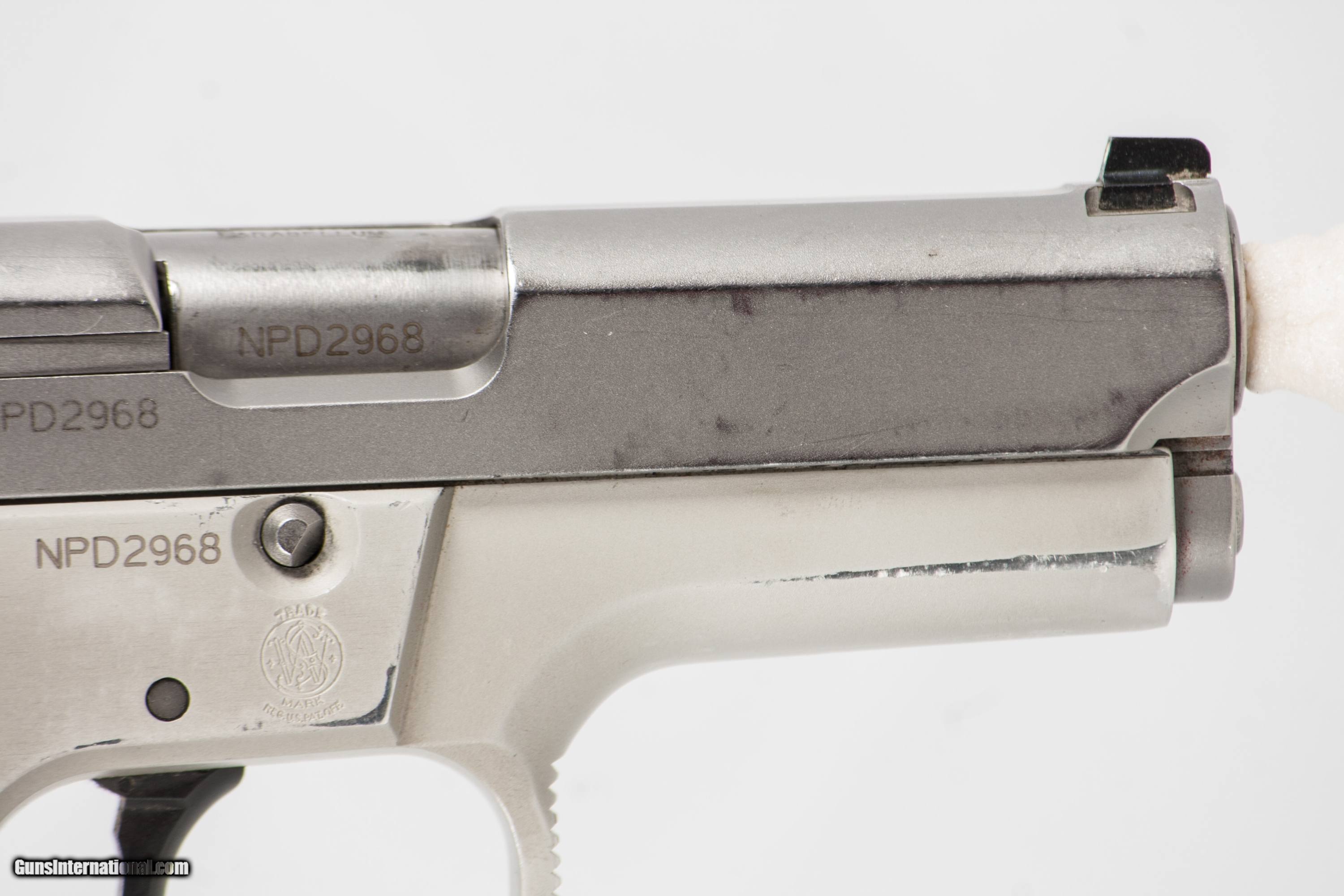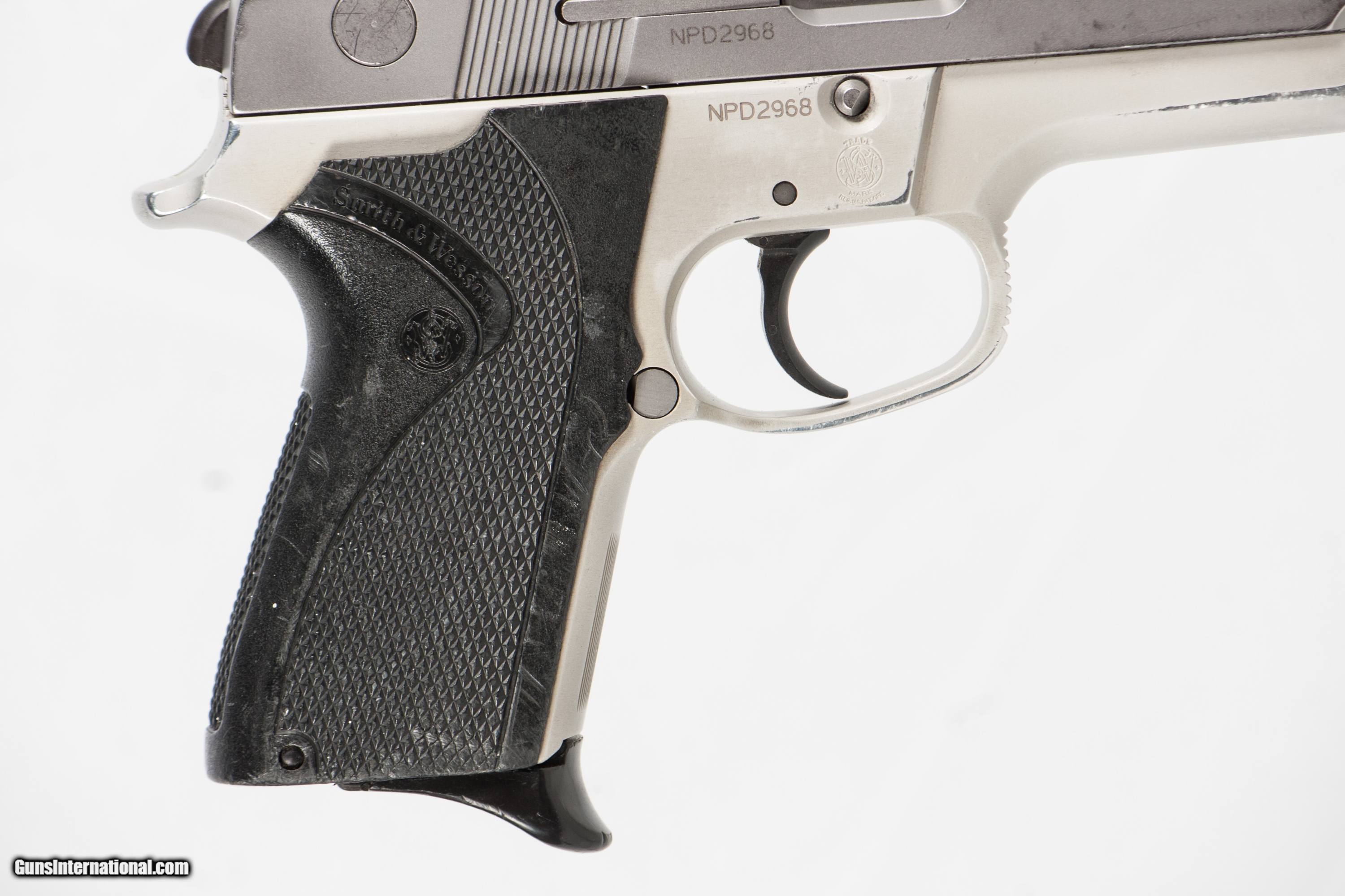 Smith & Wesson model 6946 chambered in 9mm with a 3 1/2 inch barrel bright & shiny bore case and 3 extra magazines. The slide frame and barrel are marked with a police department serial code NPD2968. The exact police department is unknown. This gun is in very good condition and is covered by Dury's Lifetime Warranty.