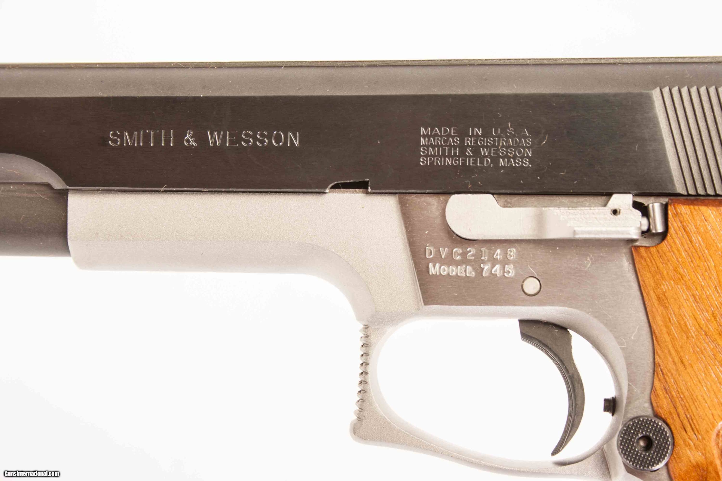Smith & Wesson model 745 chambered in .45 acp with a 5 inch barrel bright bore and good grooves. This gun is in excellent condition and is covered by Dury's Lifetime Warranty.