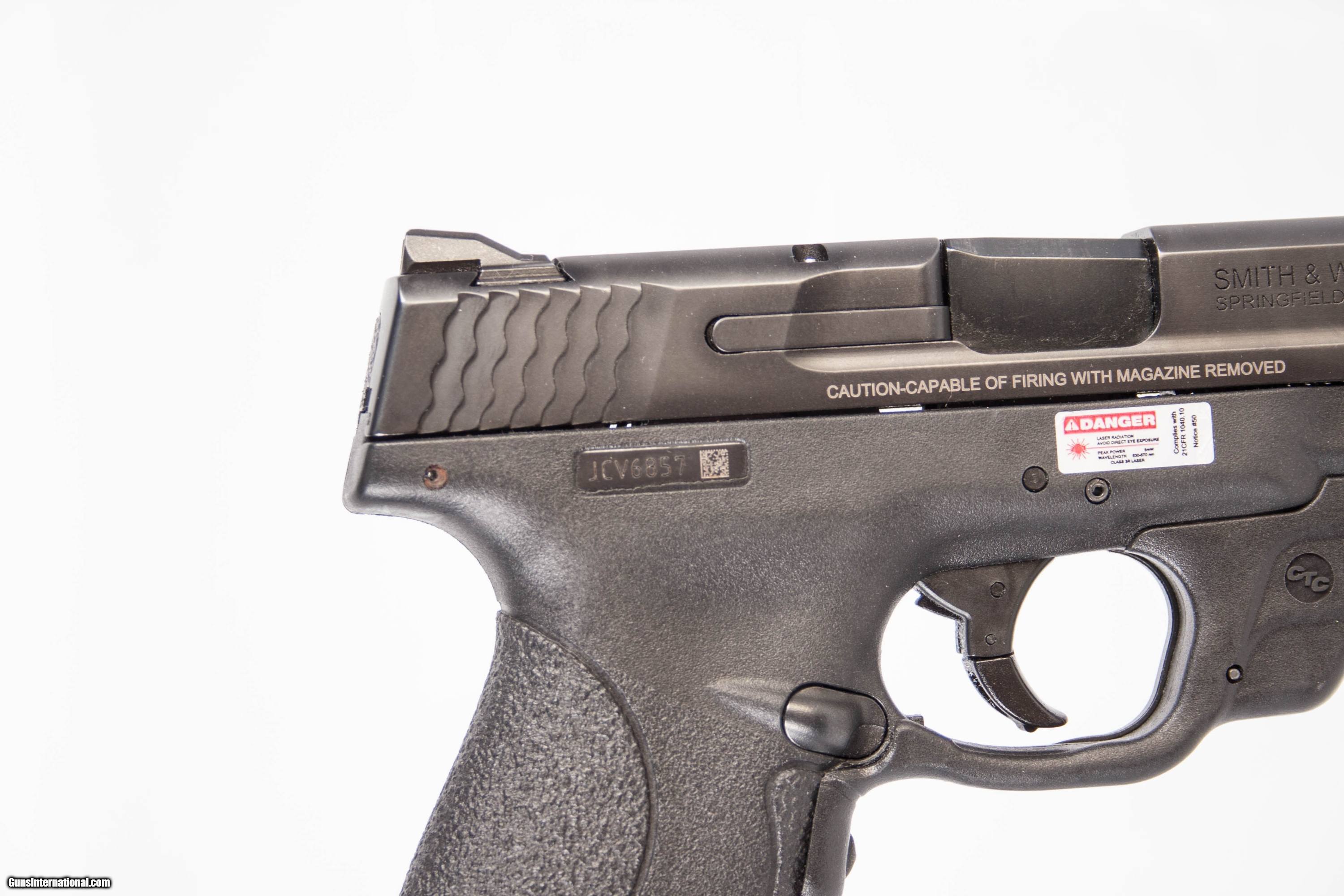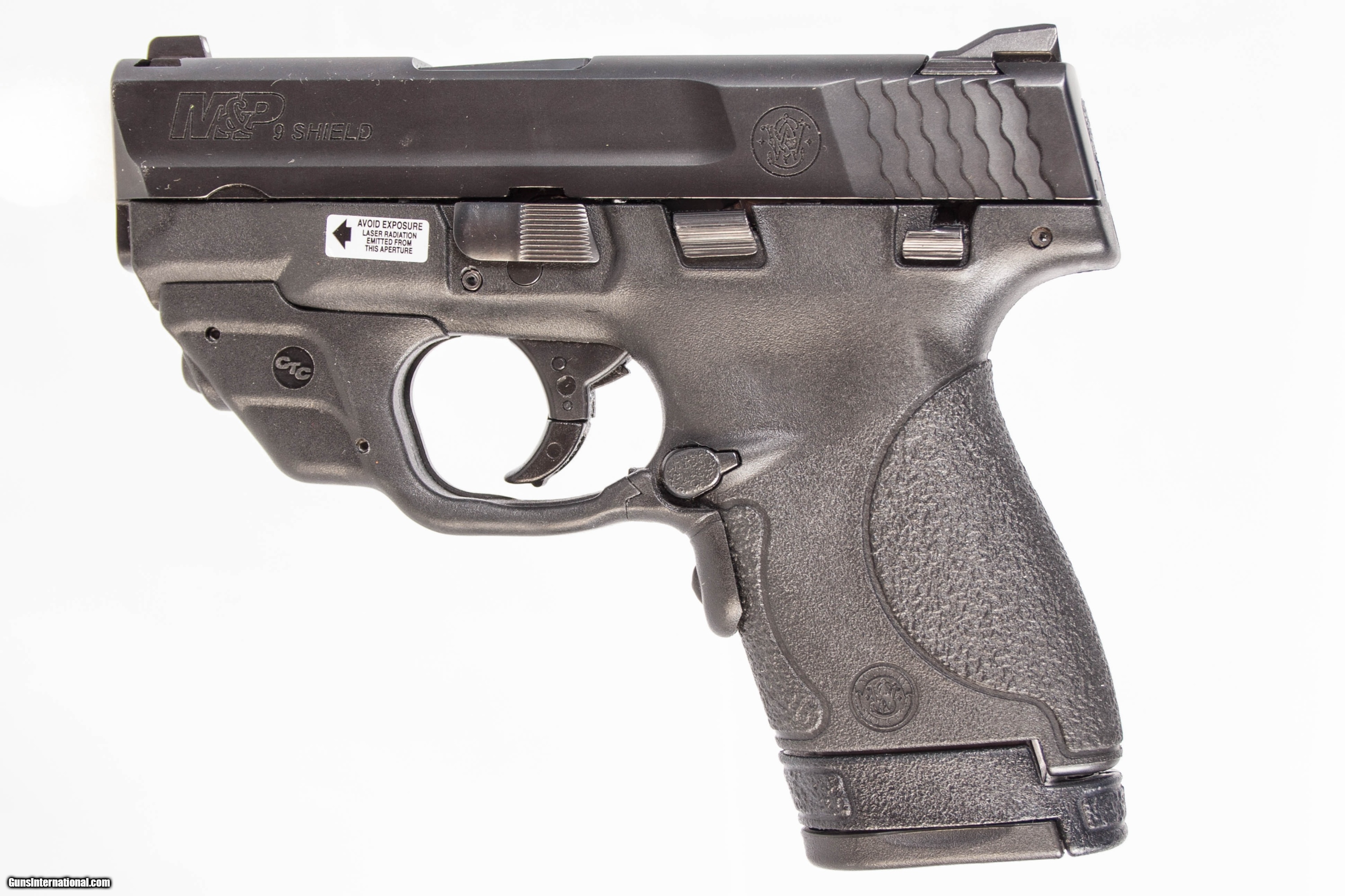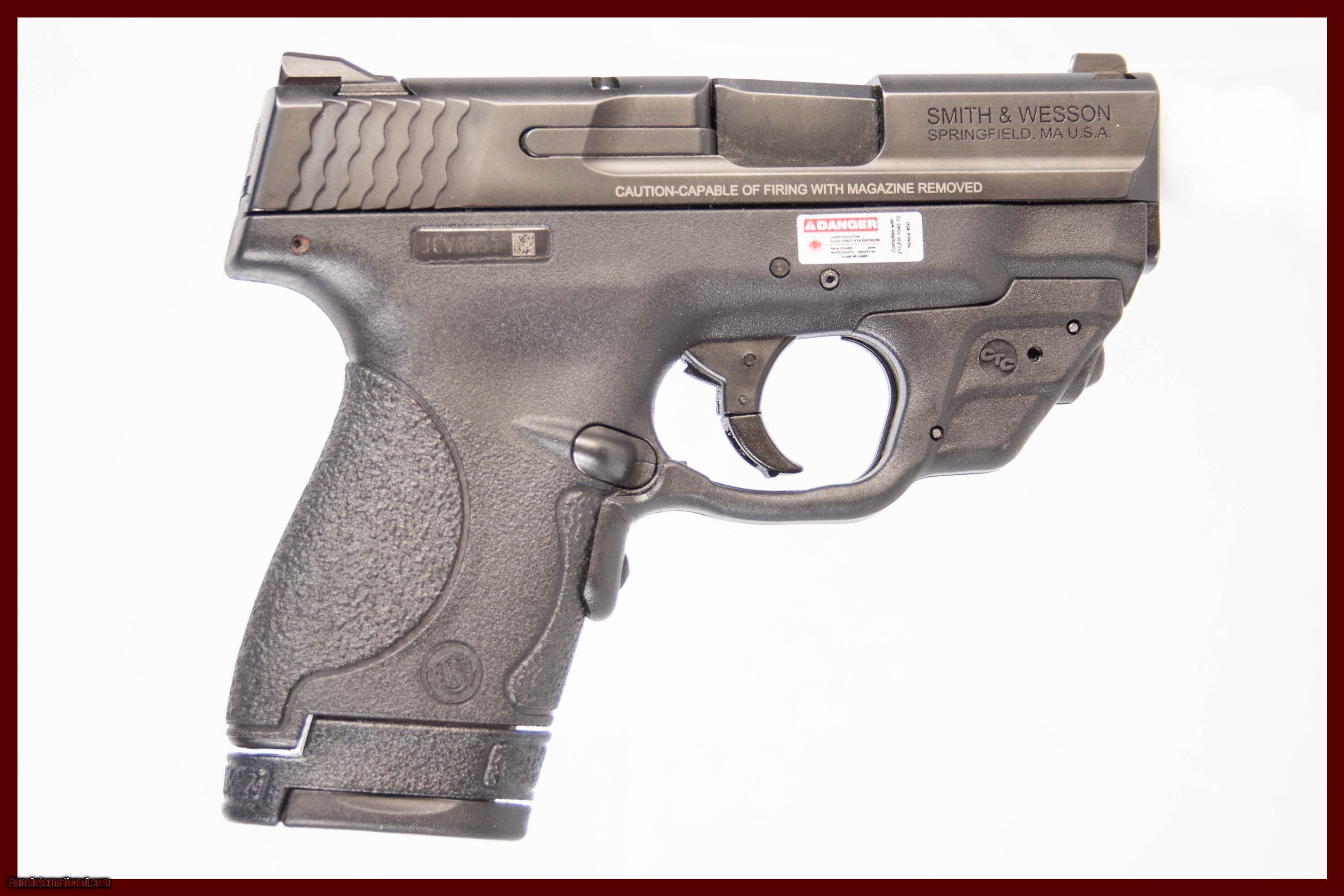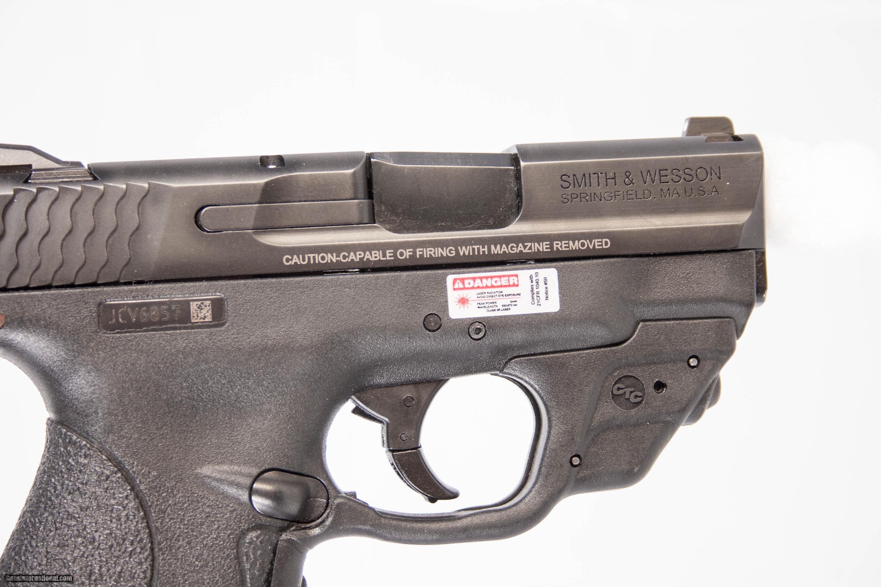 Smith & Wesson Shield chambered in 9 mm with a 3 inch barrel bright bore good grooves original box and Crimson Trace laser grips. This gun is in excellent condition and is covered by Dury's Lifetime Warranty.
