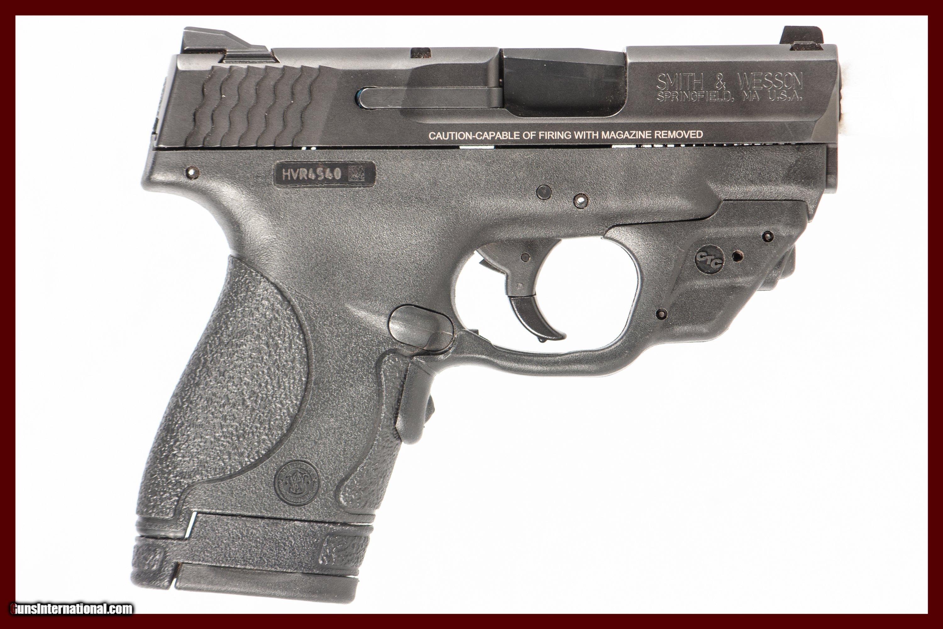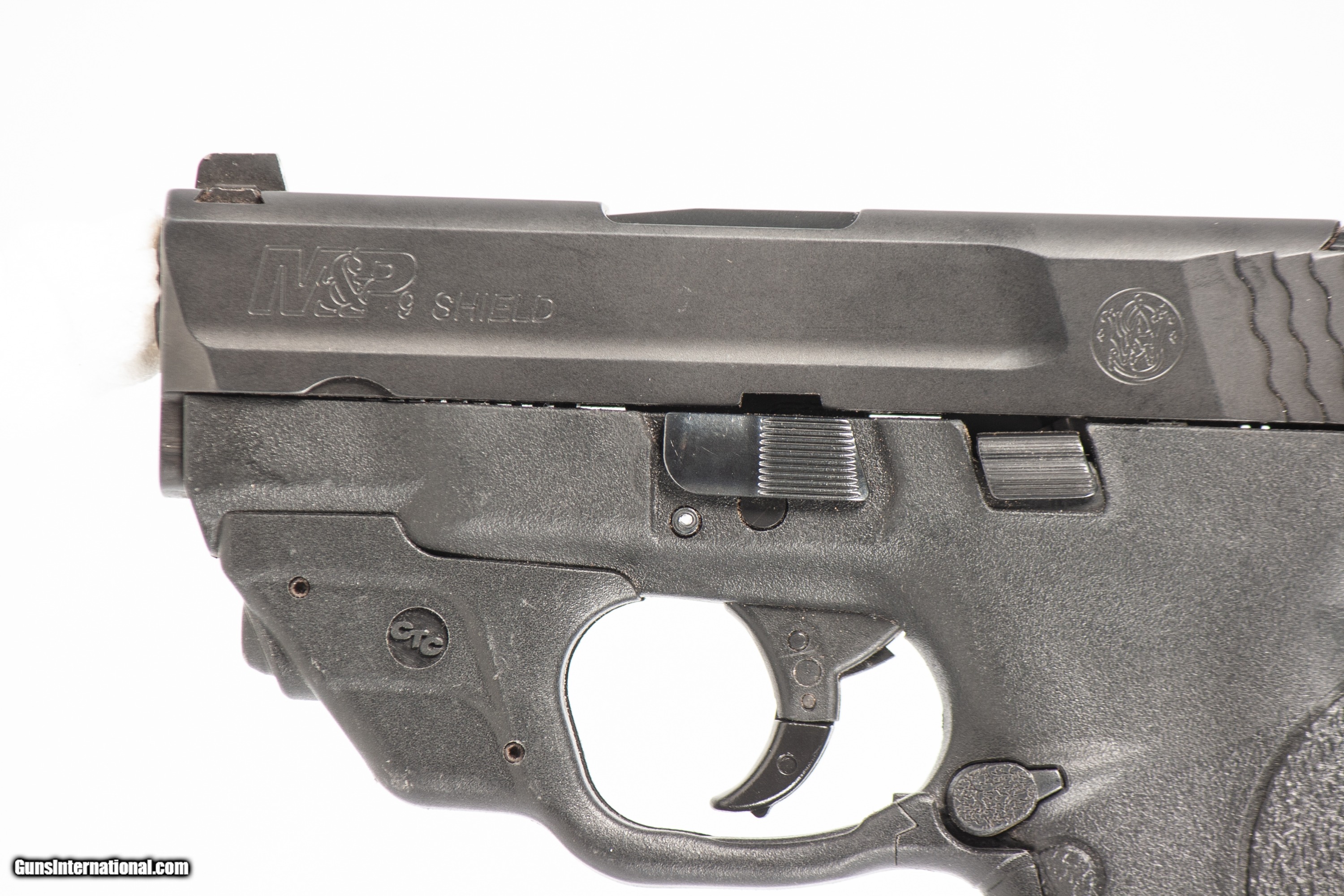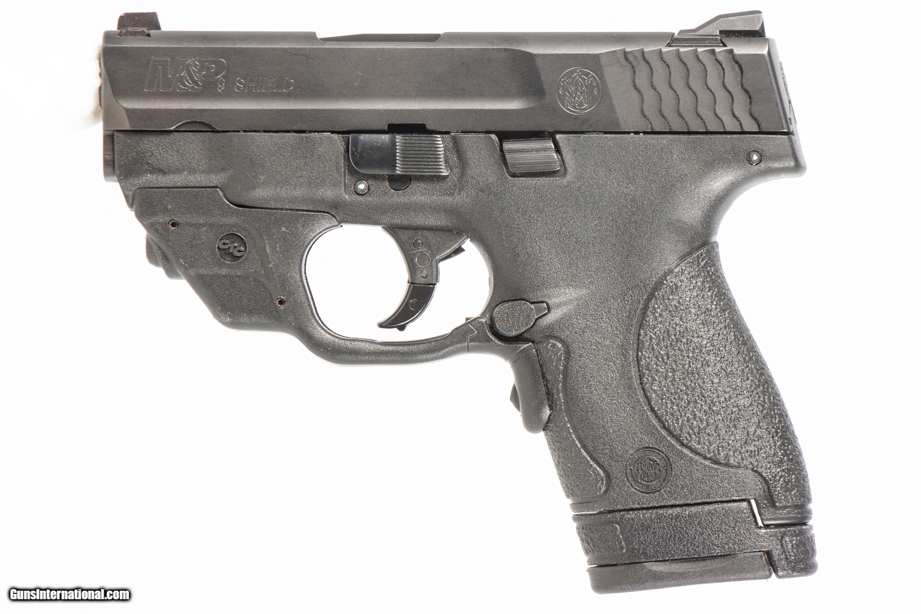 Description: Smith & Wesson M&P 9 Shield chambered in 9mm with a 3 inch barrel a bright and shiny bore Crimson Trace laser grip the original box and 1 extra magazine. This gun is in excellent condition and is covered by Dury's Lifetime Warranty. WE BUY GUNS!