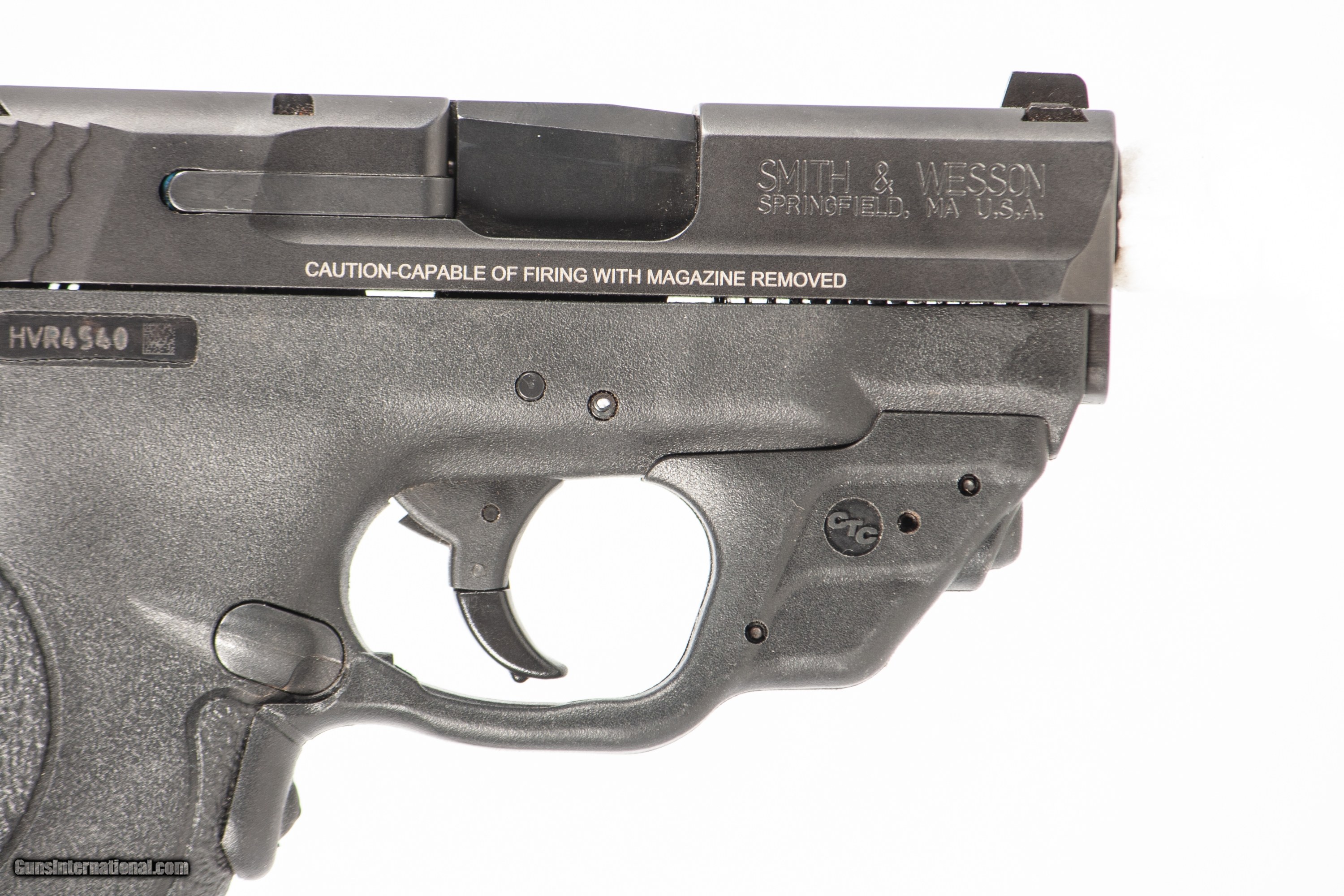 Smith & Wesson M&P 9 Shield chambered in 9mm with a 3 inch barrel a bright and shiny bore Crimson Trace laser grip the original box and 1 extra magazine. This gun is in excellent condition and is covered by Dury's Lifetime Warranty.