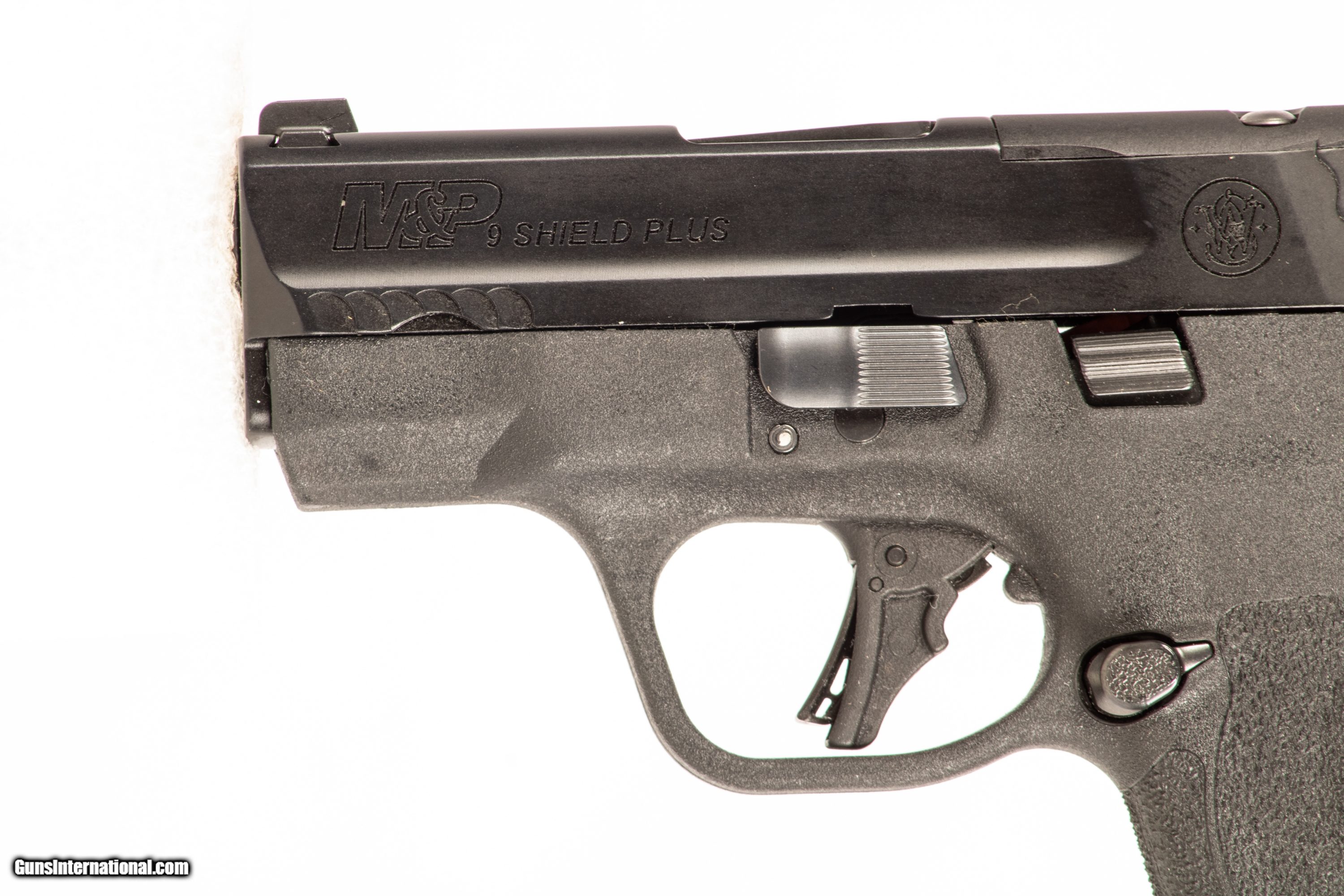 Smith & Wesson Shield Plus chambered in 9mm with a 3 inch barrel bright & shiny bore 2 extra magazines box and flat face trigger. This is a used firearm that is in excellent condition and is covered by Dury's Lifetime Warranty.