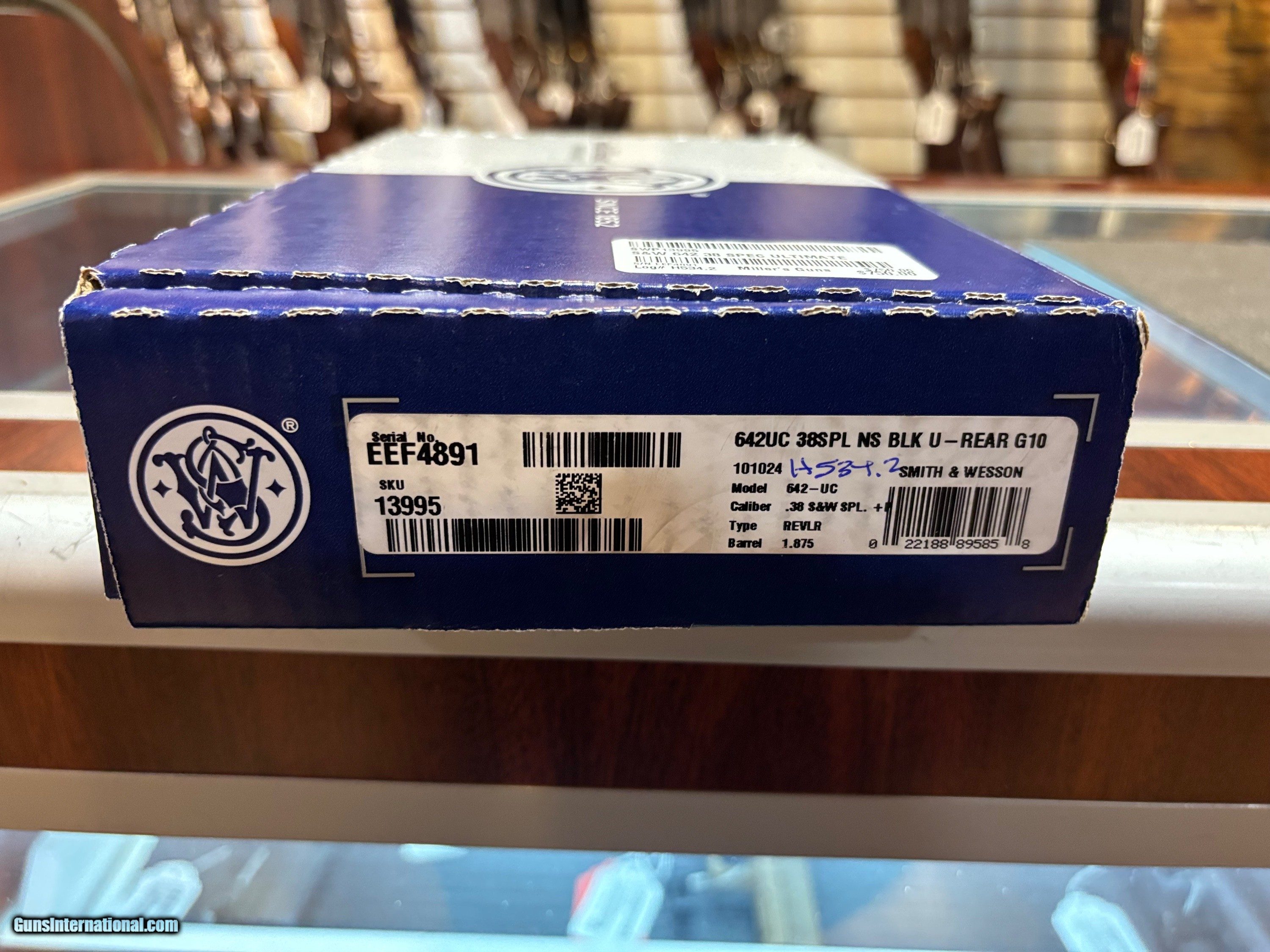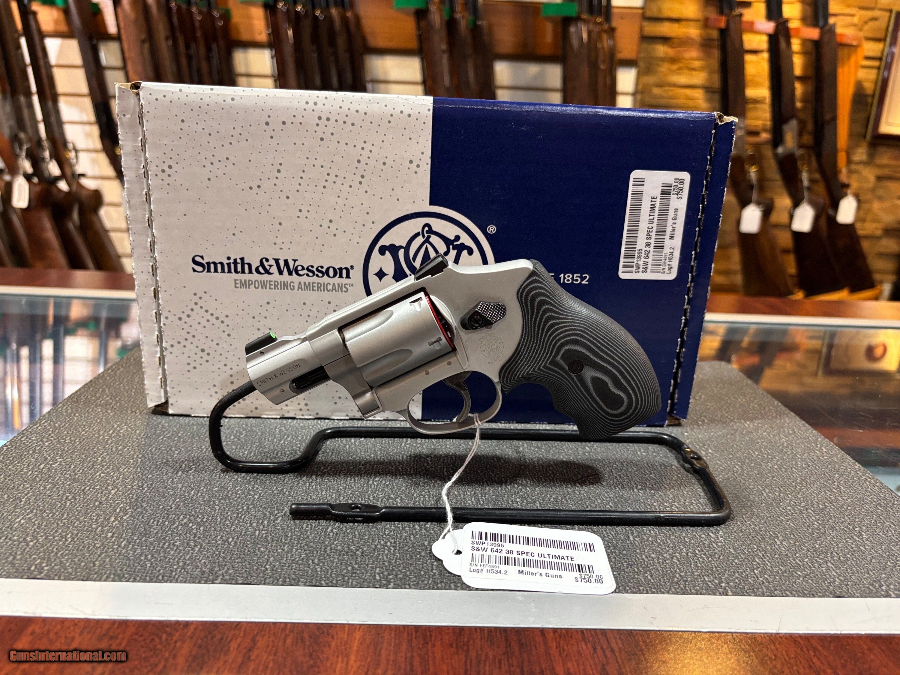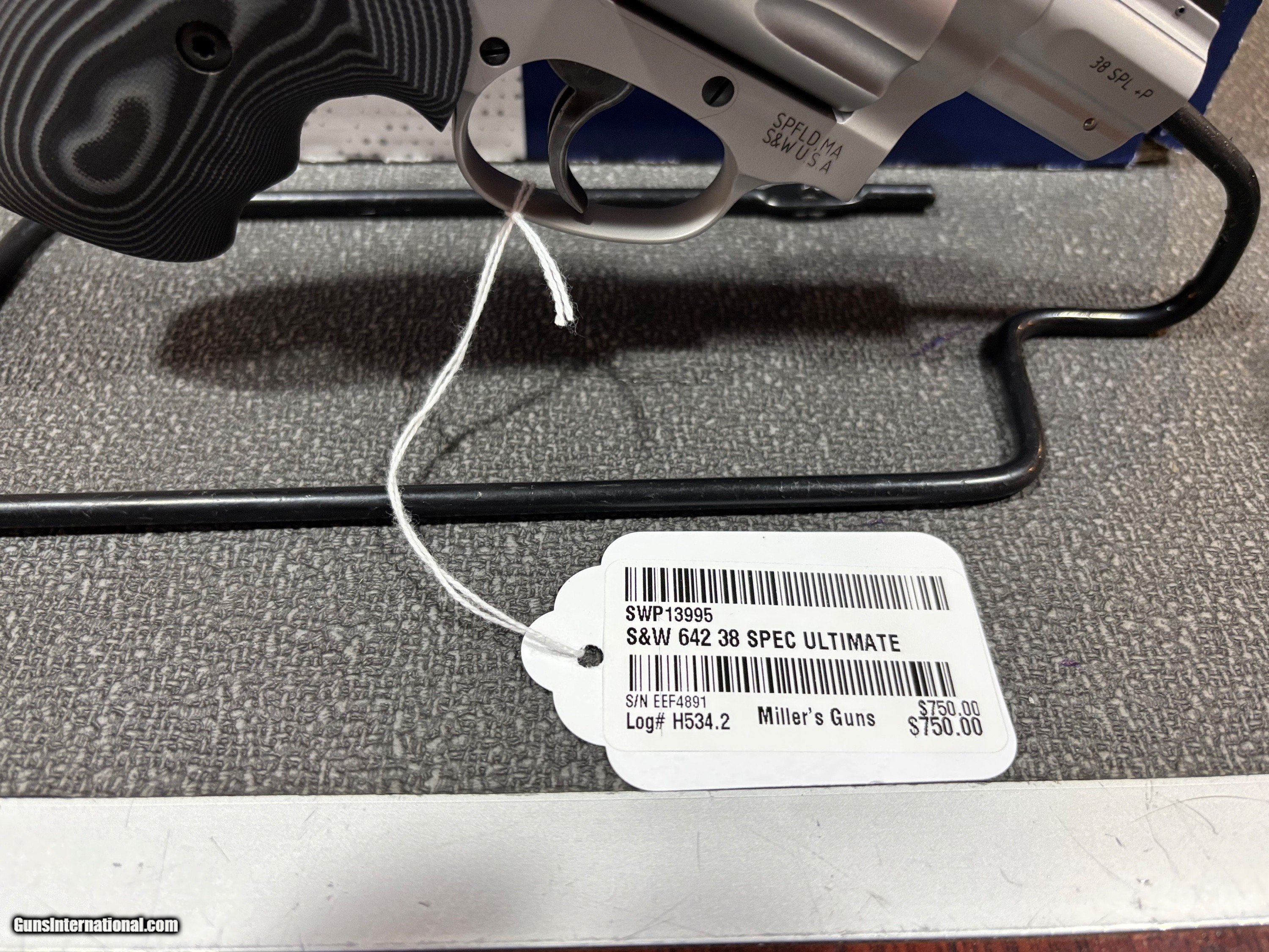 Description: Smith and Wesson 642 Ultimate Carry .38 Special 5 round capacity DAO Night sights G10 grips 1.88" barrel SOLD Handgun Caliber: .38 Special Manufacturer: Smith and Wesson Model: 642 Ultimate Carry Serial Number: EEF4891 Barrel Length: 1.88 Condition: NEW |
