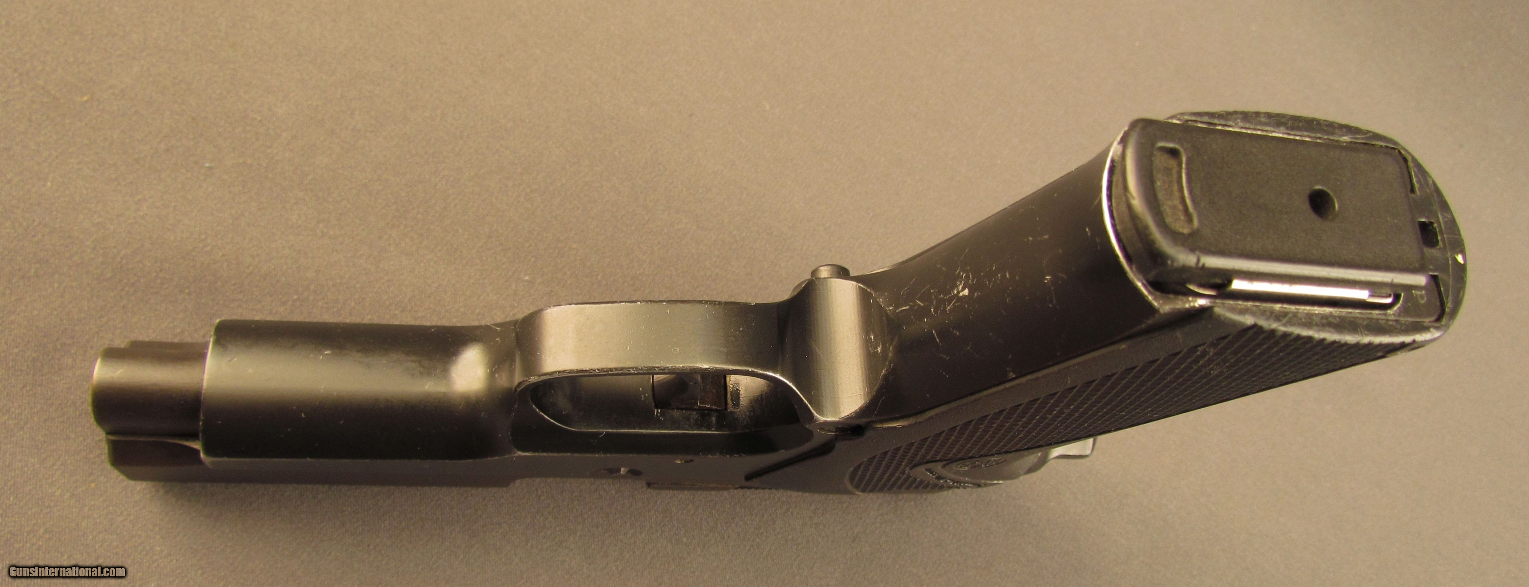 Description: A 9mm semi auto pistol with 10 shot double stack magazine. The gun will also accept the 15 shot law enforcement mags. Serial number is VJC4860. This is one of the S&W "Value Series" pistols with the 3 dot sight system produced from 1995 to date. Very fine overall condition and including a nylon "War Gear" snap strap holster. Also included is a second 10 round magazine. Bright, excellent bore. FFL. SOLD Manufacturer: S&W Model: 910 Serial Number: 9mm Caliber Info: 9mm Gauge Info: 9mm |