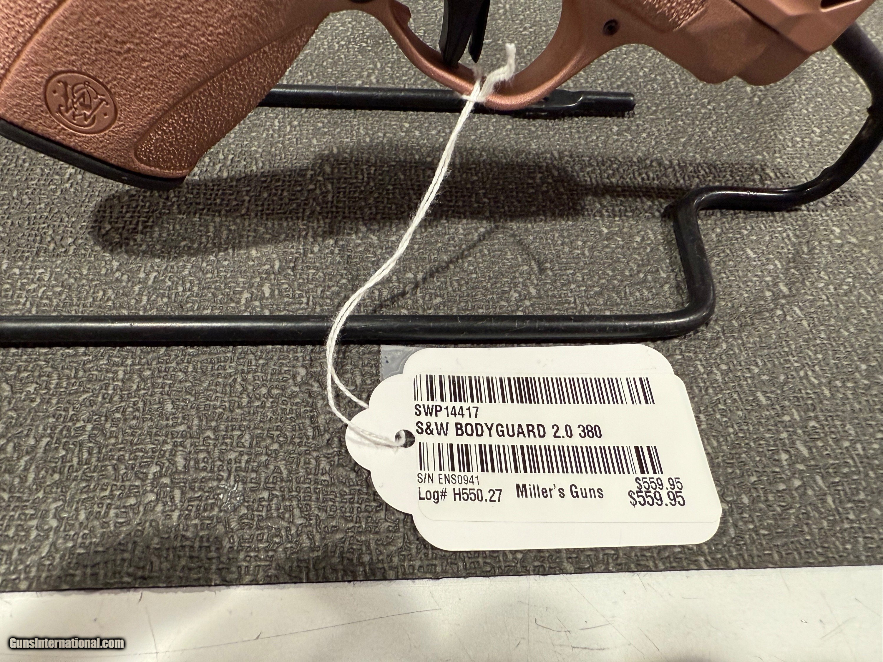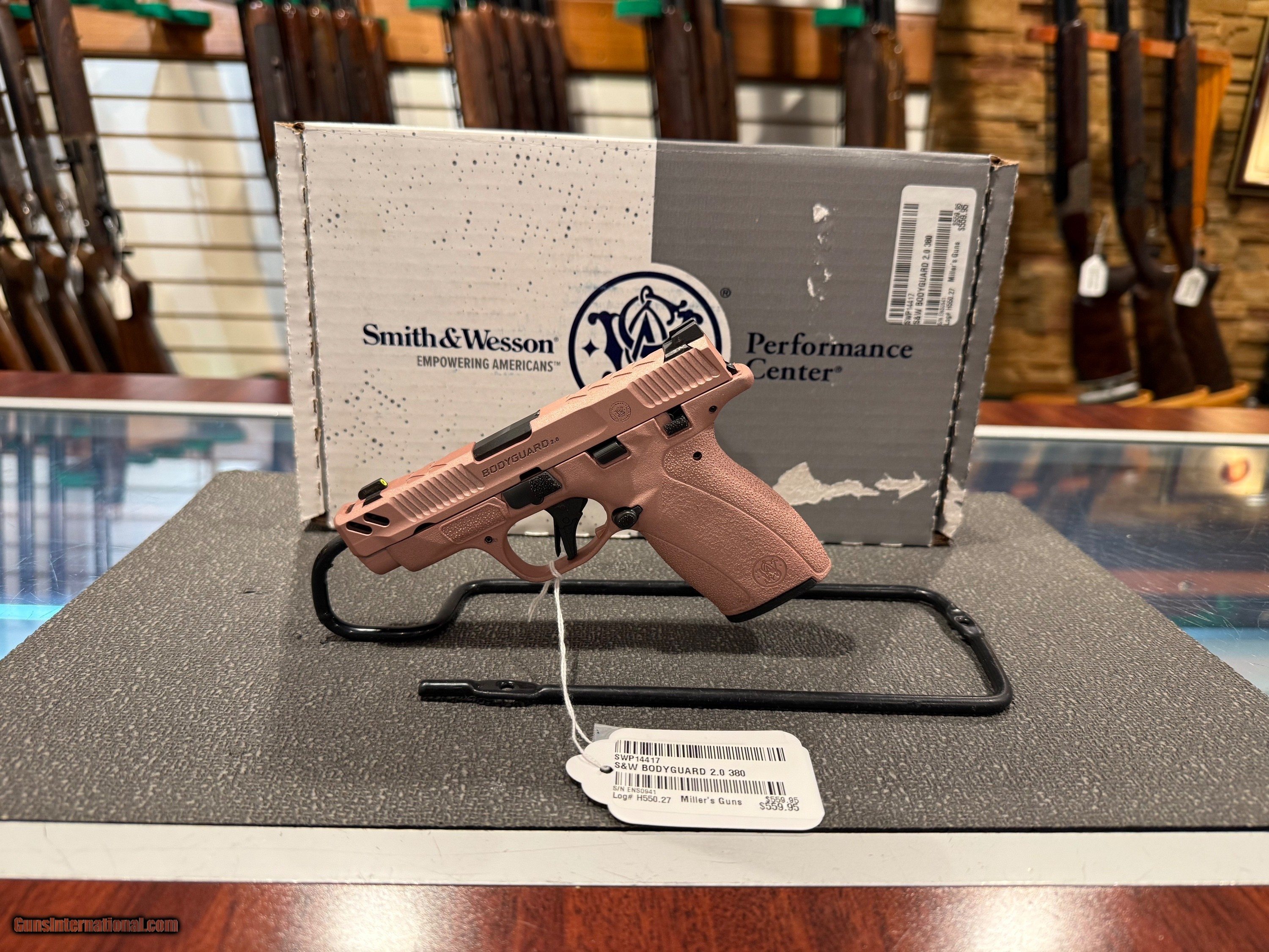 Description: Smith and Wesson Bodyguard 380 2.0 .380acp Rose Gold cerakote (1)10 round and (1)12 round magazine included Manual safety Compensated Handgun Caliber: .380 ACP (9x17mm Browning Short) Manufacturer: Smith and Wesson Model: Bodyguard 380 2.0 Serial Number: ENS0941 Barrel Length: 3.1 Condition: NEW Price: $559.95 Contact Seller |