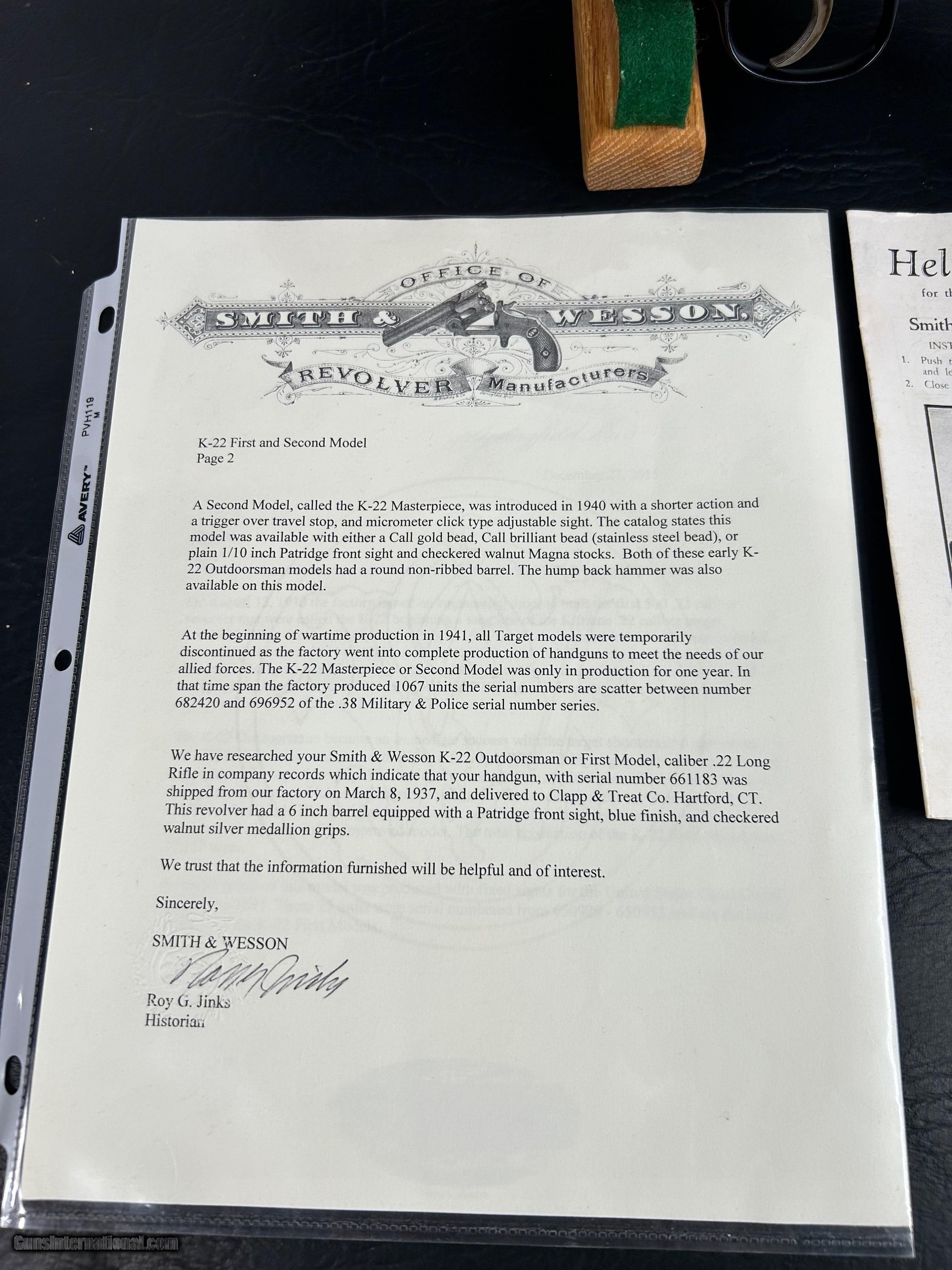 Smith and Wesson Outdoorsman NIB 1937