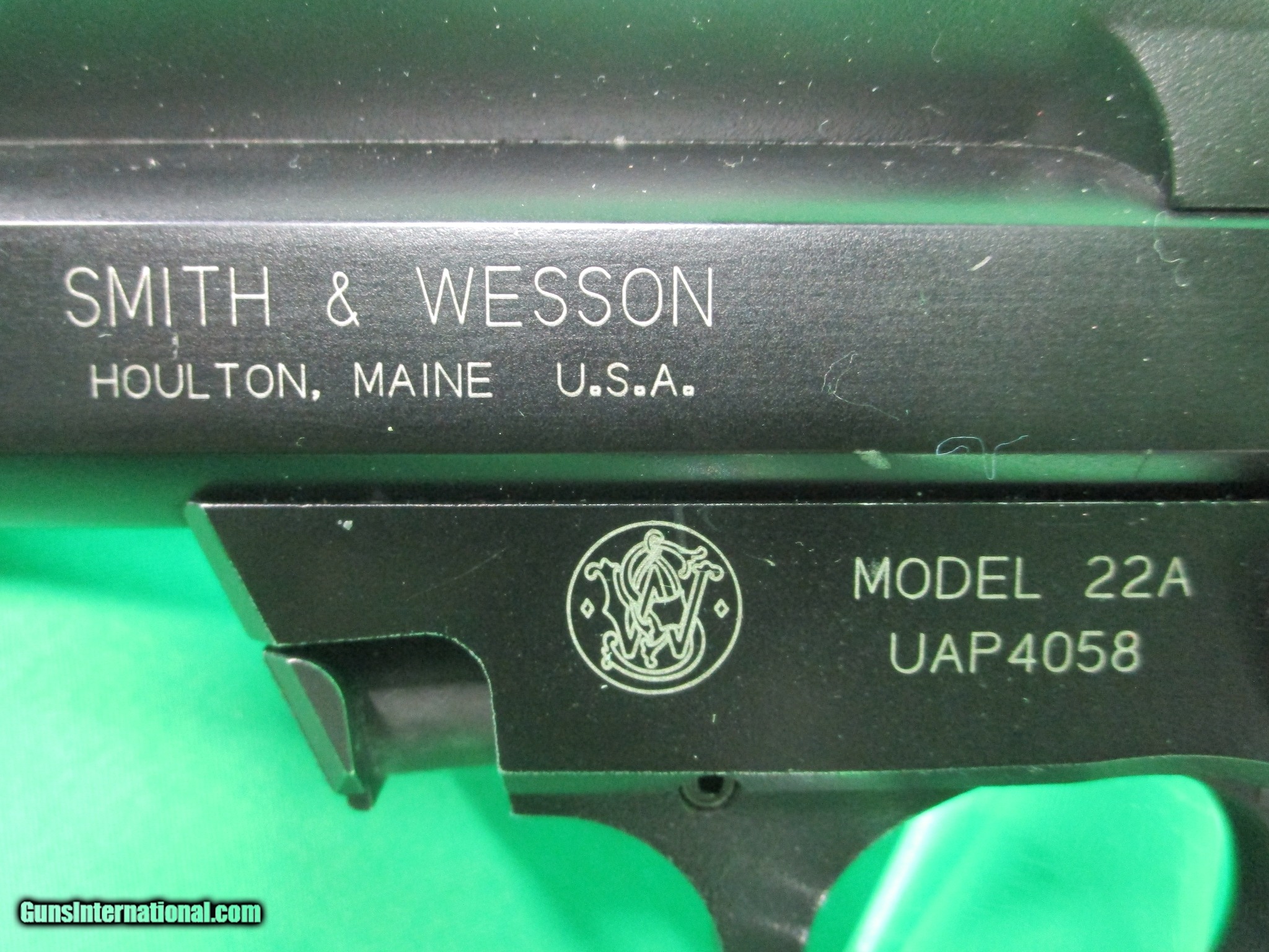 Description: Guns Listing ID: 1128518 We have a used Smith & Wesson 22A semi-automatic pistol for sale. This is chambered in 22LR with a 4\" barrel. It comes as shown in pictures with one 10 round magazine. This is in Good Used Condition. Overall we would grade at approx 95% with wear from use and a few scratches on the firearm. Most noticeable by the tip of the barrel. Check out the pictures and feel free to call or email with any questions. SOLD Manufacturer: SMITH & WESSON Model: 22A Caliber Info: .22 LR Condition: Used - Non-Certified Barrels: 4 BARREL Finish: BLACK |