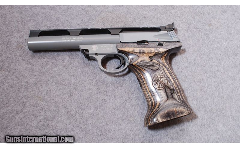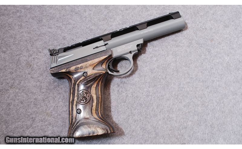 Description: This S&W 22S model has target grips, a bull barrel, integrated Weaver style rail, and one 10rd magazine. .22 Long Rifle SOLD Metal Condition: Excellent. Rail has marks from optic being installed. Wood Condition: "Wood grips are in excellent condition, with minor handling marks. Bore Condition: Excellent with strong rifling. Barrels: 5.5" Barrel. Triggers: Grooved trigger. Weight: 2 lbs Sights: "Fixed front, adjustable rear. Weaver style rail for optics. Item Location: Rapid City, SD |