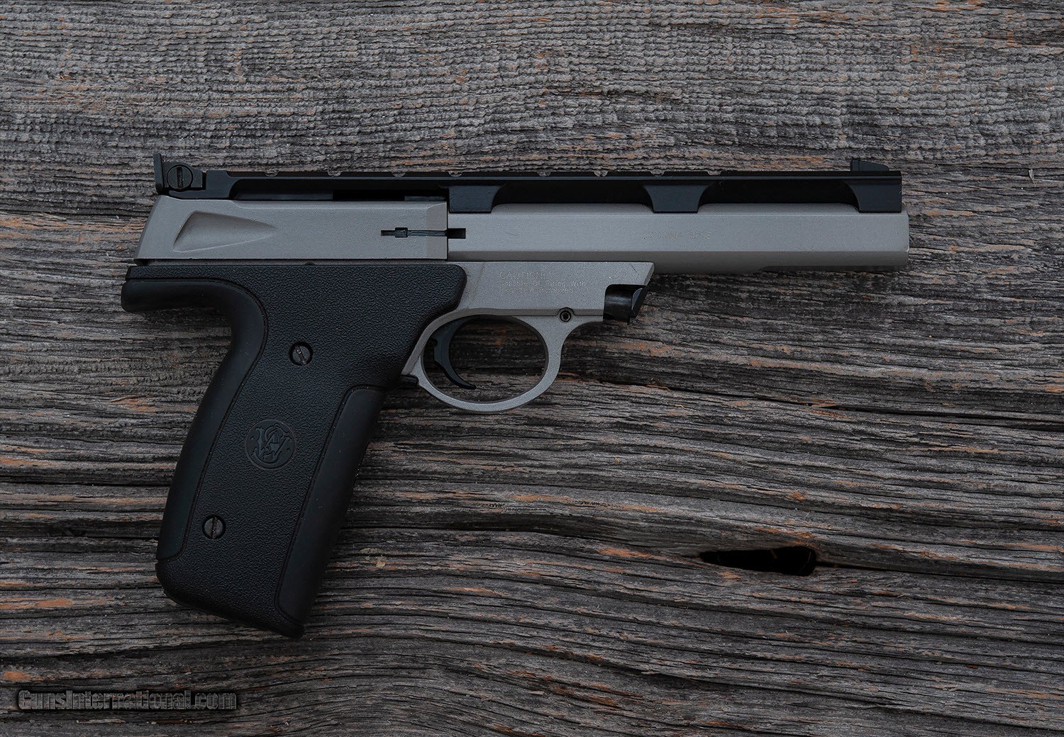 Description: Smith & Wesson - 22S - .22 - Item Number: SMIUAM8127 Barrel length: 5.5 Finish: Gray Lop: NA Lbs: |/23| Ozs: 12 Overall condition: Very Good Stock condition: Very Good Metal condition: Very Good Stock:Original Metal:Original Type of Case: Maker's Plastic Case Manufactured in: USA Comments: Very clean pistol with a few light marks on it. HG-34 SOLD Handgun Caliber: .22 Long Rifle |