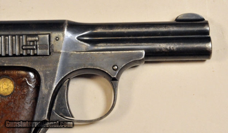 Description: #1676 Smith & Wesson Automatic Pistol Ser. No. 2963. .35 S&W auto- 3 1/2" barrel, walnut grips. SOLD |