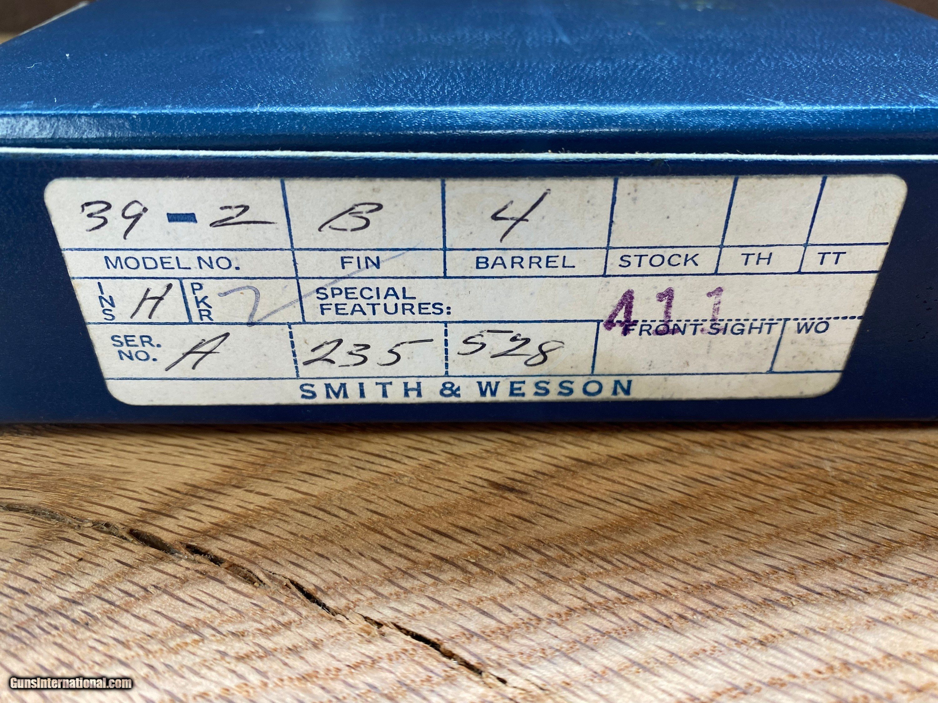 Description: This is a beautiful Smith & Wesson 39-2, it is in fabulous shape with not a scratch on it. This gun has been a safe queen its whole life, all original with original papers and mags as well as the box. SOLD Handgun Caliber: 9x19mm Parabellum (9mm Luger, 9x19mm NATO) Manufacturer: Smith & Wesson Model: 39-2 Serial Number: A235528 Barrel Length: 4 |