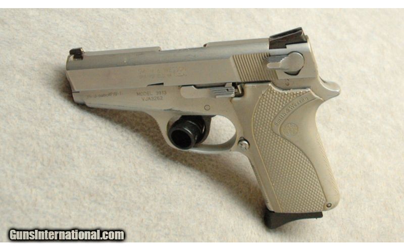 Description: Smith & Wesson Model 3913 Lady Smith Pistol 9mm. Good condition with one mag. Lightweight 9mm semi auto, a good choice for concealed carry or a lady's handbag. SOLD Caliber Info: 9mm. Chambers: Semi auto. Metal Condition: Good, noticeable finish wear. small nicks and scratches. Wood Condition: Grips are in good condition. Bore Condition: Bright. Barrels: 3 1/2" Barrel. Triggers: Double action decocker. Stock: Factory grips. Weight: 26 Ozs. Sights: 3 Dot iron sights. Extras: With one mag. Item Location: La Vista, NE |