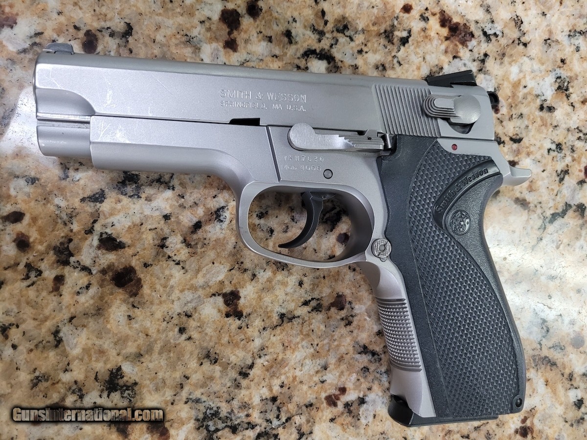 Description: Guns Listing ID: 713771 STAINLESS STEEL SMITH & WESSON MODEL 4006 CHAMBERED IN .40S&W, WITH 11-ROUND MAGAZINES INCLUDED. FIREARM IS GREAT SHAPE. PLEASE LOOK AT ALL PHOTOS. FIREARM IS FOR SALE IN-SHOP AS WELL, SO LISTING MAY BE REMOVED AT ANY TIME DUE TO IN-SHOP PURCHASE. BUY TODAY! SOLD Manufacturer: SMITH & WESSON Model: 4006 Caliber Info: 40 S&W Condition: Used - Non-Certified Barrels: 4 BARREL Finish: STAINLESS |