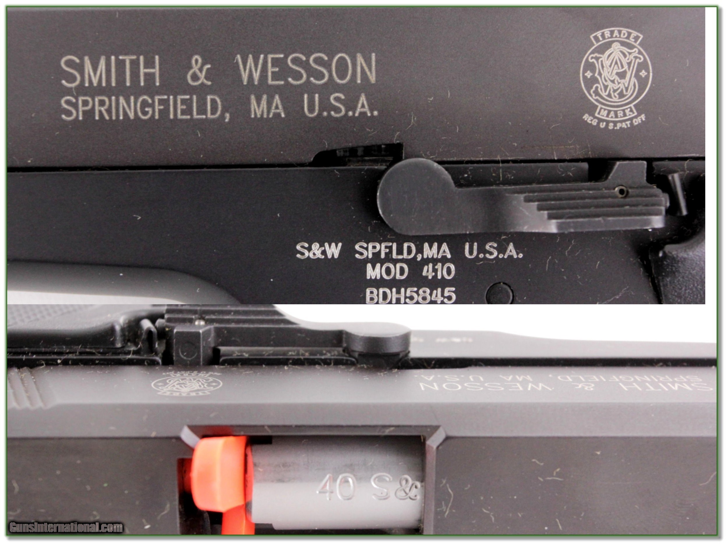Description: This is a new, unfired and in the case Smith & Wesson 410 in 40 S&W. It comes as seen in original case, 2 10 round magazines and papers. I am selling this one on consignment and as such lay-a-way can’t be used. It does of course have the standard 3-day inspection. Shipping with insurance is $39. Please email me with any questions or larger pictures. (Consign your quality firearms with Shooting Investments for only 12%! Let me know if you have any you would like to sell!) 19-0120 Payment: Payment is by Money Order, Cashiers Check or Personal Check. I can now also accept MasterCard and Visa with a 3% convenience fee. PayPal can be used for some items but never firearms. Please let us know if you would like to pay via PayPal. Shipping: The shipping charge will be listed in each description. It is $39 for most long guns and $29 for most handguns. Some heavy guns or those insured for over $2000 will be higher. Shipments to Alaska and Hawaii are higher because air shipment is required. Most firearms are shipped on Tuesday and Thursday and usually in 5 days of receipt of payment. We package all shipments carefully and insure them. For long guns you can purchase a new Plano case for $19. They now cost us $22 when buying 100 at a time. Optics are shipped Priority Mail and most other non-firearm shipments are shipped First Class. Returns: Our return policy is simple. If for any reason you are not pleased with your purchase, you may return your item for a full refund of purchase price. Ammunition cannot be returned. It is important to us that you are happy. Guns cannot be fired or dissembled before returning them and they must be returned in the same condition as received. Notification of a return must occur with-in 3 days of receipt at your dealer. Shipping, convenience and dealer fees are not refundable and are the responsibility of the buyer. Lay-a-way: If needed, we offer a 60 day lay-a-way option on most firearms. It is 1/3 now, 1/3 in 30 days and 1/3 in 60 days. Lay-a-way firearm sales are final and if not completed the first payment cannot be returned. Consigning your firearms with Shooting Investments: We will help you get top dollar for your firearms. While most local guns shops charge 20% or more, our fee is only 12% with a minimum of $75. At your local gun shop it might take months to sell. Selling on-line provides instant access to thousands of interested buyers. You won’t find any other on-line dealer willing to sell your firearms for only 12% or listing every gun on 3 separate s. Selling through an House typically costs the seller 15% and the buyer an addition 15% (so 30%) and you have to wait several months to sell and longer to receive funds. If properly priced, we will sell your firearms in a few weeks. Send us an email or give us a call and we’ll explain how easy it is for you to get top dollar. Trading: Trading for use is really just buying your gun to re-sell. If you have a gun you want to trade, please email a picture and we will let you know what we can give or it. You will always get more if we sell it for you on consignment. Help for California Buyers: We are happy to ship to California. It is the buyer’s responsibility to make sure any item you buy is legal in your state. We are also happy to help with your purchase of a firearm from someone other than us. If you see a gun you would like to buy but the seller can’t or won’t ship to California they can ship to use and we’ll then ship it to your California dealer. The cost for this service is only $30 + shipping. Let us know if we can help! SOLD |