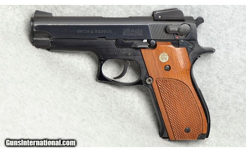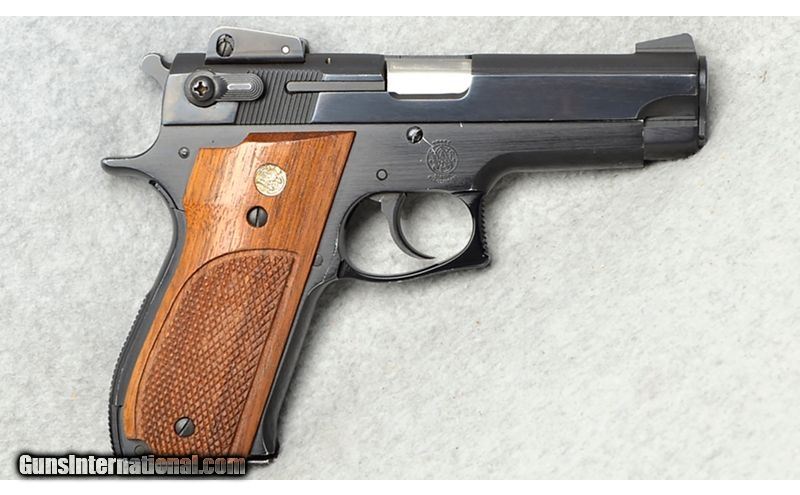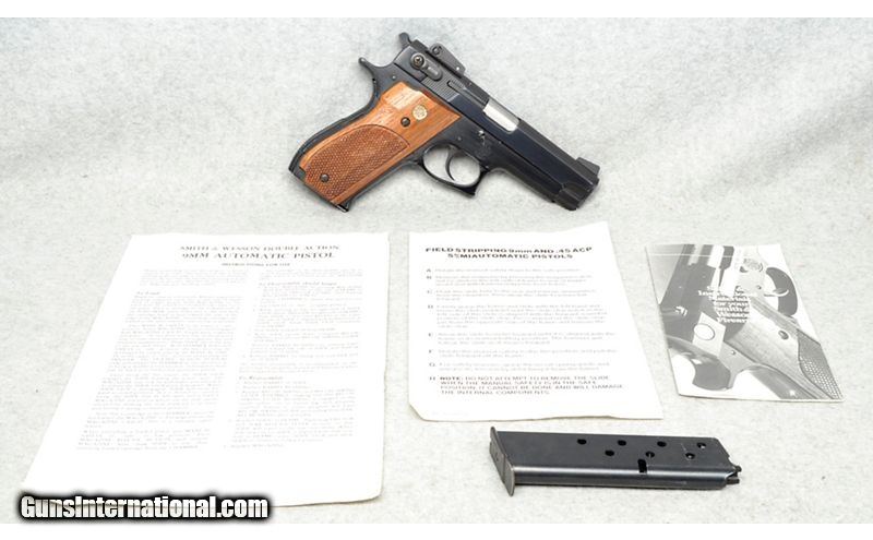 Description: An awesome classic Smith & Wesson design in good clean shape and working order. The protected adjustable rear sight makes this gun a great range piece while the aluminum alloy frame single stack design make it a serious carry competitor to a 1911. 9mm Parabellum SOLD Chambers: 9MM Parabellum Metal Condition: "Very good, some light handling and holster marks and one small scratch on the frame on the right side near the hole for the link pin. Wood Condition: "Wood is in great shape, no cracks. Two small dings at the bottom of the grips that look they came from magazine lips when some missed while inserting a magazine. Bore Condition: "Bore condition is great, nice and clean no rust or pits. Barrels: 4 Inch Triggers: Double Action/ Single Action with De-cocker Weight: 1 lb. 13 ozs. Sights: "Adjustable windage and elevation on rear sight, fixed front milled into the slide Item Location: Cheektowaga, NY |