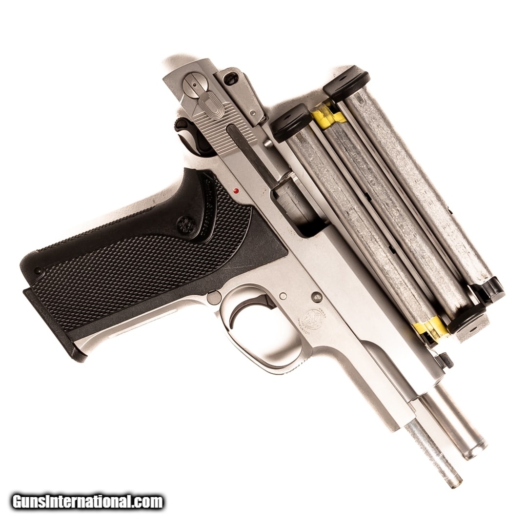 Description: Guns Listing ID: 840733 The Smith & Wesson Model 4506-1 offers stainless steel construction. It‚‚s well-made and ready to endure the harshest weather conditions while serving you for decades to come. The Model 4506-1 is designed so that the first shot is fired in double-action mode and subsequent shots fired in single-action mode. This Model 4506-1 has a safety decocker. Purchase includes the original case, owner‚‚s manual, four 8-round magazines, and an extra guide rod spring. Get the best bang for your buck when you get a Certified Used Firearm . When you see the Certified Used stamp on any of our firearms, you can be confident that you’re getting exactly what you want – a gun only in very good to excellent condition and held to the highest quality standard. All Certified Used Guns come with a ‘no questions asked’ return policy . PLUS, ALL CERTIFIED USED GUNS SHIP FRE SOLD Manufacturer: SMITH & WESSON Model: 4506-1 Caliber Info: .45 ACP Condition: Used - Certified Barrels: 5 BARREL Finish: STAINLESS |