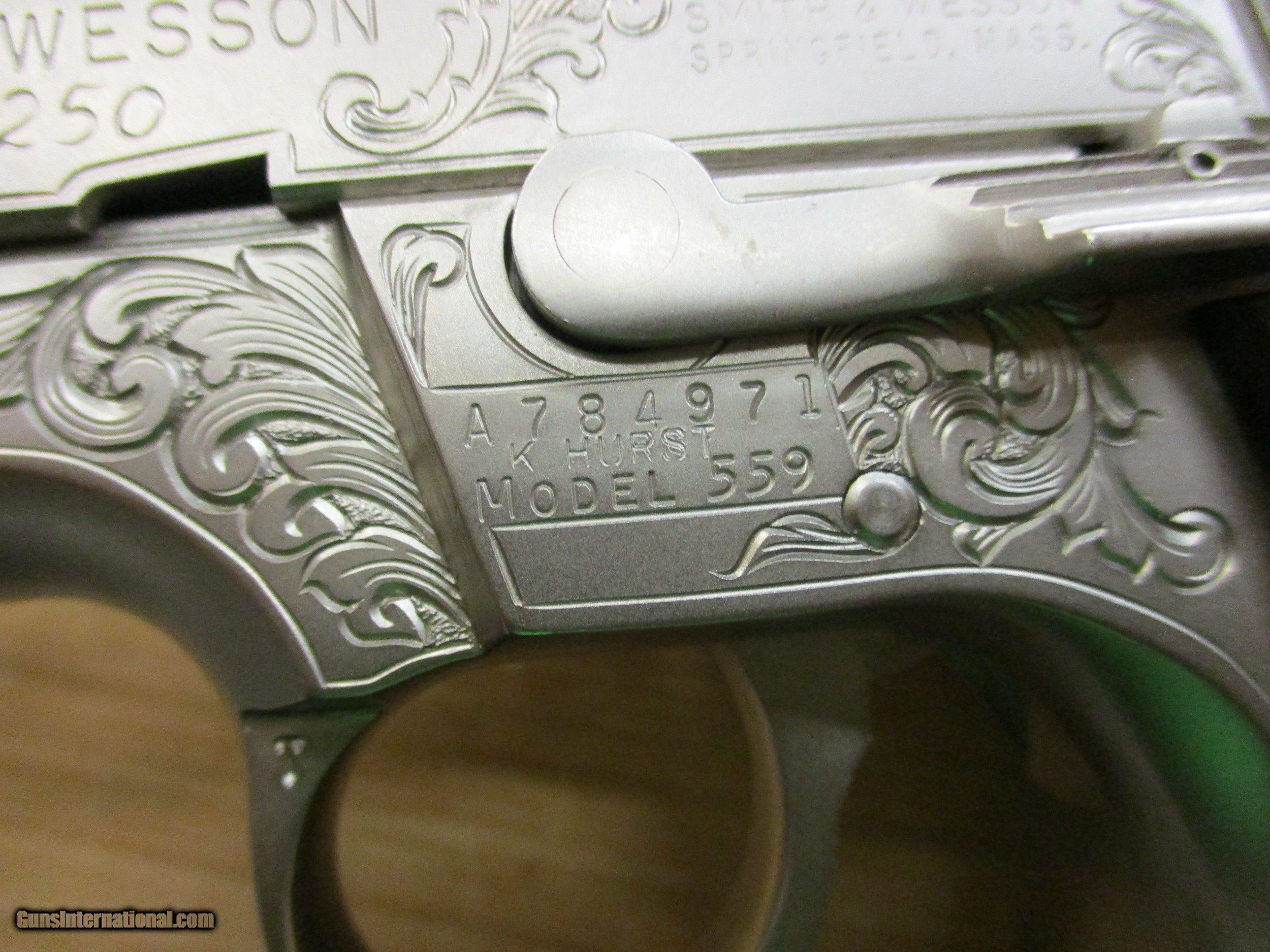 SMITH & WESSON 559 NICKEL ENGRAVED K HURST 9MM NAFLFDA