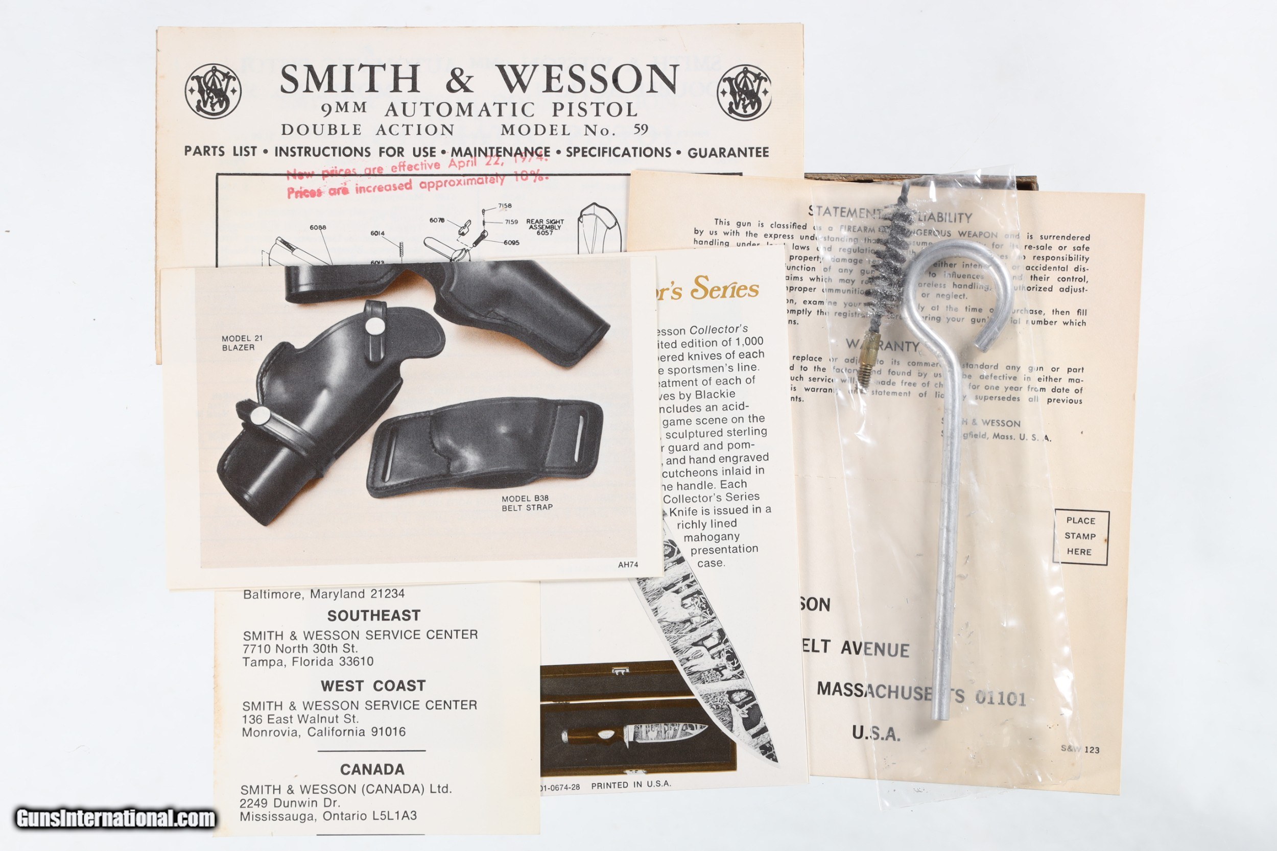 Description: Excellent plus to like new overall condition with original box and extra magazine. • Free Shipping, No Credit Card Fees. • Lay-a-way available for this firearm. • 1/3 Down, a 1/3 in 30 Days 1/3 in 60 Days. SOLD Manufacturer: Smith & Wesson Model: 59 Serial Number: A243928 Barrel Length: 4 |