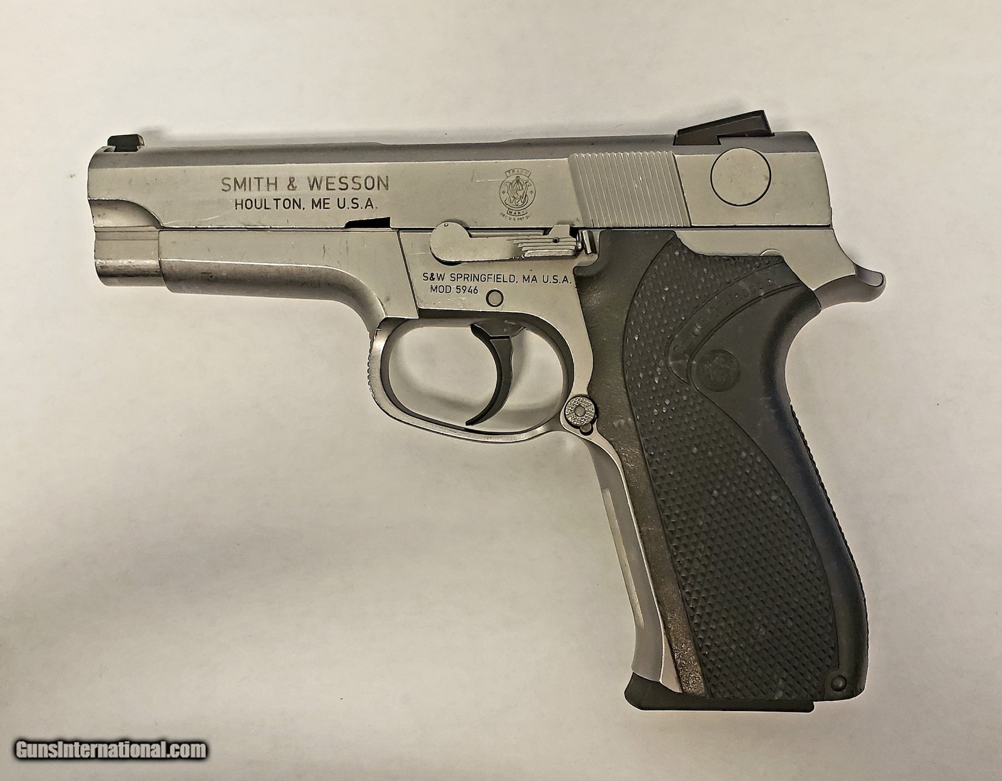 Description: Guns Listing ID: 924421 This Smith & Wesson 5946 9mm pistol is a police trade-in in good condition. It comes with 3 OEM 15 round magazines and a generic case. The trigger is DAO SOLD Manufacturer: SMITH & WESSON Model: 5946 Caliber Info: 9MM LUGER (9X19 PARA) Condition: Used - Non-Certified Barrels: 4 BARREL Finish: STAINLESS |
