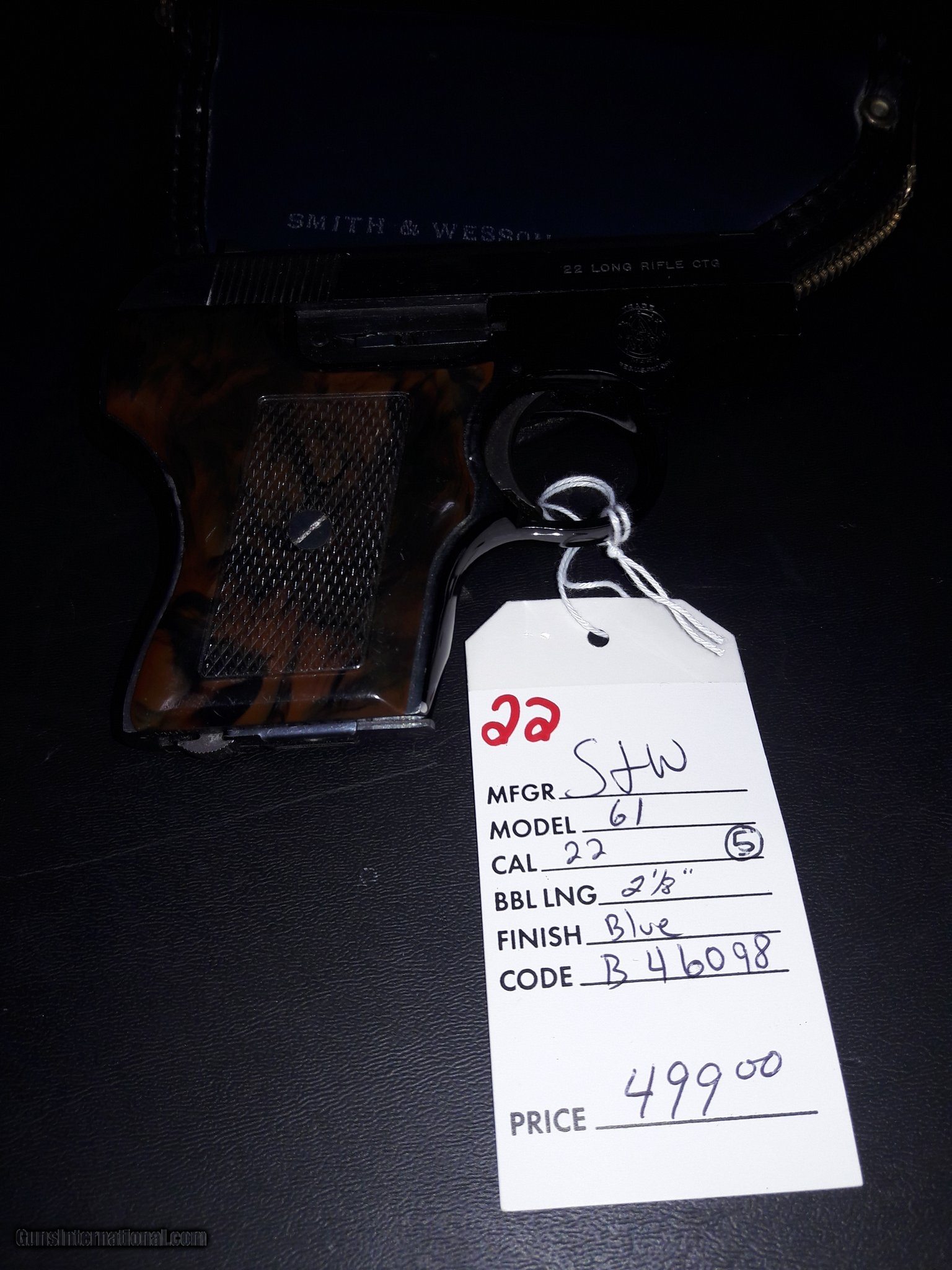 Description: Guns Listing ID: 1175210 Really nice gun! Comes with a Smith & Wesson soft case, as seen in pic. SOLD Manufacturer: SMITH & WESSON Model: 61 Caliber Info: .22 LR Condition: Used - Non-Certified Barrels: 2 BARREL Finish: BLUE |