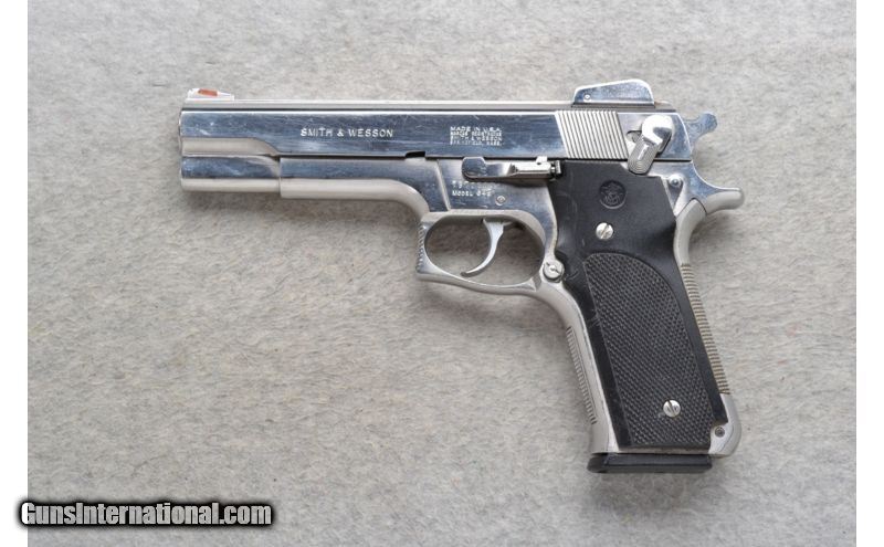 Description: This Smith & Wesson Model 645 is a double action high gloss all stainless steel semi-auto pistol in .45 Auto Cal. It has a 5 inch barrel with a rear serrated slide. The grips are a checkered black molded nylon and is has checkered front and back straps. It has an ambidextrous safety and decocker. Manufactured only between 1985 - 1988. This is a very nice full size double action semi-auto pistol. SOLD Caliber Info: .45 Auto Chambers: Semi-Auto 8+1. Metal Condition: Good with multiple surface marks. Wood Condition: Grips are in good condition. Bore Condition: Good. Barrels: 5 inch barrel with a rear serrated high gloss finish stainless steel slide. Triggers: Single Action / Double Action. Squared trigger guard. Stock: Checkered black molded nylon grips. Checkered front and back straps. Ambidextrous safety. Decocker. Weight: 40 oz. Sights: Serrated blade front with red. Adjustable notch rear with protective sides. Item Location: Richfield, WI |