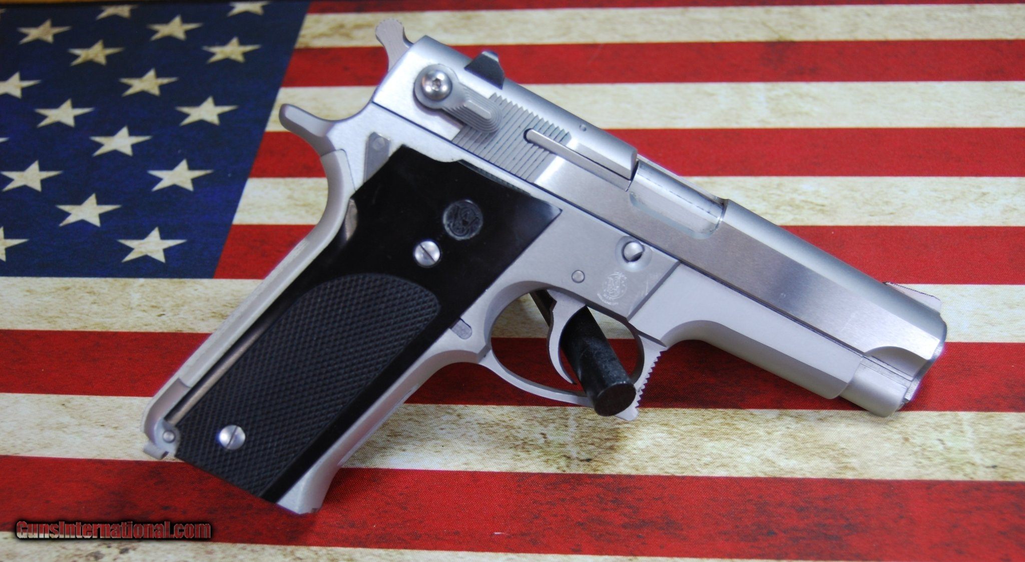 Description: Guns Listing ID: 532004 This Smith & Wesson comes to us as a consignment sale and has several extras that go with it. Serial number on our pistol is A882575. Based on the squared off trigger guard and the ambi safety, this is one of the later model 659 pistols and was likely manufactured between 1986 and 1989. Like all of the model 659s, this one is chambered for 9mm, with a magazine capacity of 14. It has a four inch barrel, functions in double action or single action mode, has a squared-off trigger guard and fixed sights. The ambi safety also functions as a decocker. The black grips are half checkered and bear the Smith & Wesson logo. The action on the pistol is smooth. The single action trigger is light and short. The double action trigger is . . . a double action trigger. The bore on this one is exceptionally clean. The barrel is bright and the rifling appears to be strong. The grips are in Very Good condition. The finish is in Excellent condition although there is one very minor scuff on the right side just above the trigger guard. It’s small and only visible in certain lights. The Bianchi holster is in Very Good condition. The HKS magazine pouches are in Excellent condition. This is a very nice, vintage Smith & Wesson pistol. All signs point toward very light use and it’s been well maintained. Whether you’re carrying this one in a holster or just using it at the range, it will catch a lot of attention, and for good reason. Take a look at the photos and see if you agree. Purchase includes the pistol, Bianchi Cyclone leather belt loop holster with retention strap, HKS double magazine pouch (belt loop model), (3) 14 round magazines (two appear to be Smith & Wesson brand while one is a Ram Line model. This is a consignment sale and, like all of our consignments, we have not test fired this pistol. We have performed our function checks and find no issues to report. As with all pre-owned firearm purchases, please review SOLD Manufacturer: SMITH & WESSON Model: 659 Caliber Info: 9MM LUGER (9x19 PARA) Condition: Used - Non-Certified Barrels: 4 Action: SEMI AUTOMATIC Finish: stainless |