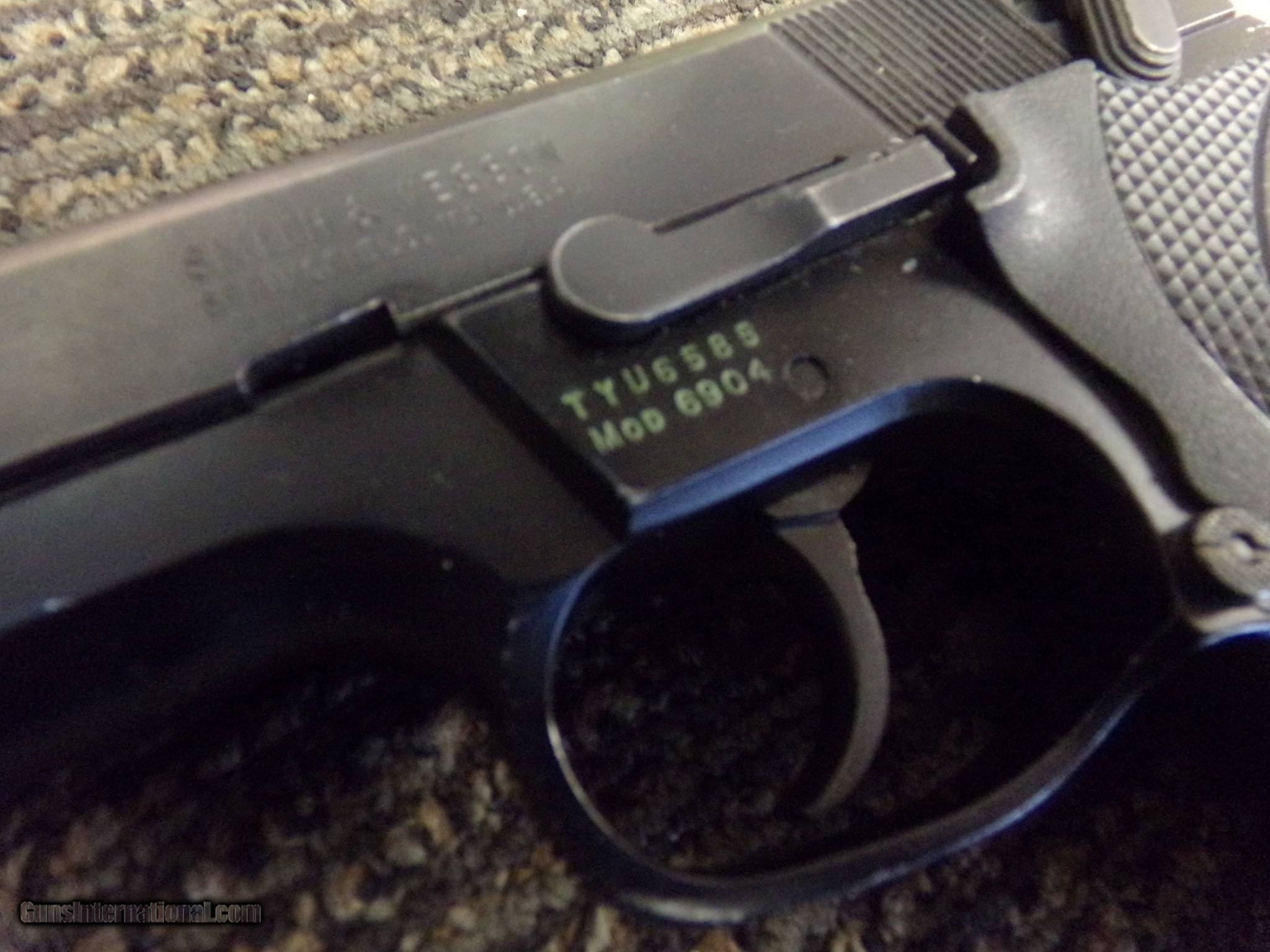 Description: Guns Listing ID: 442522 Smith model 6904...semi-auto 9MM compact...includes two 12 round factory magazines with finger extensions...3.5\" barrel...DA/Sa...manual safety....nice older Smith! SOLD Manufacturer: SMITH & WESSON Model: 6904 Caliber Info: 9MM LUGER (9X19 PARA) Condition: Used - Non-Certified Barrels: 3.5 BARREL Finish: BLACK |