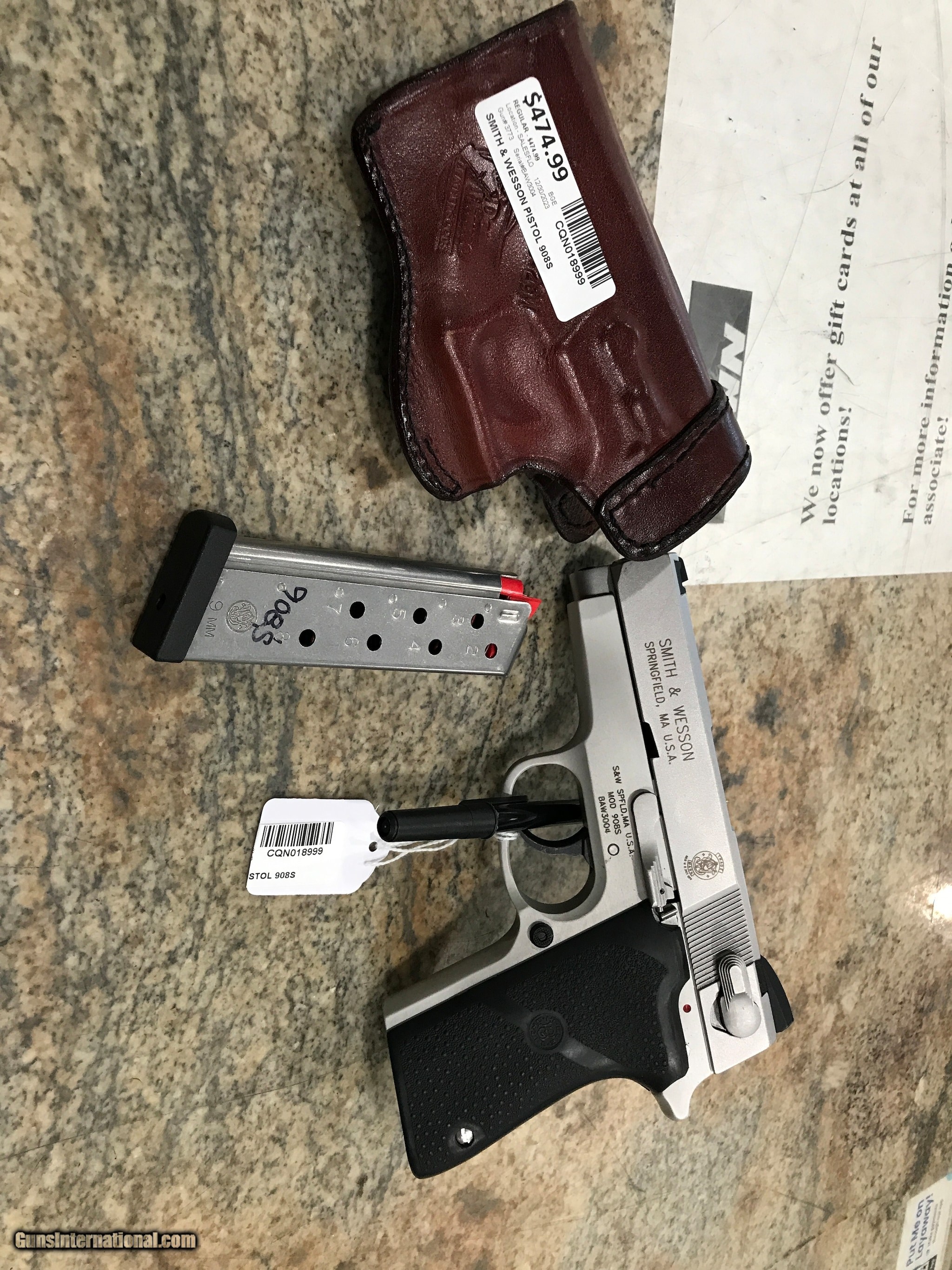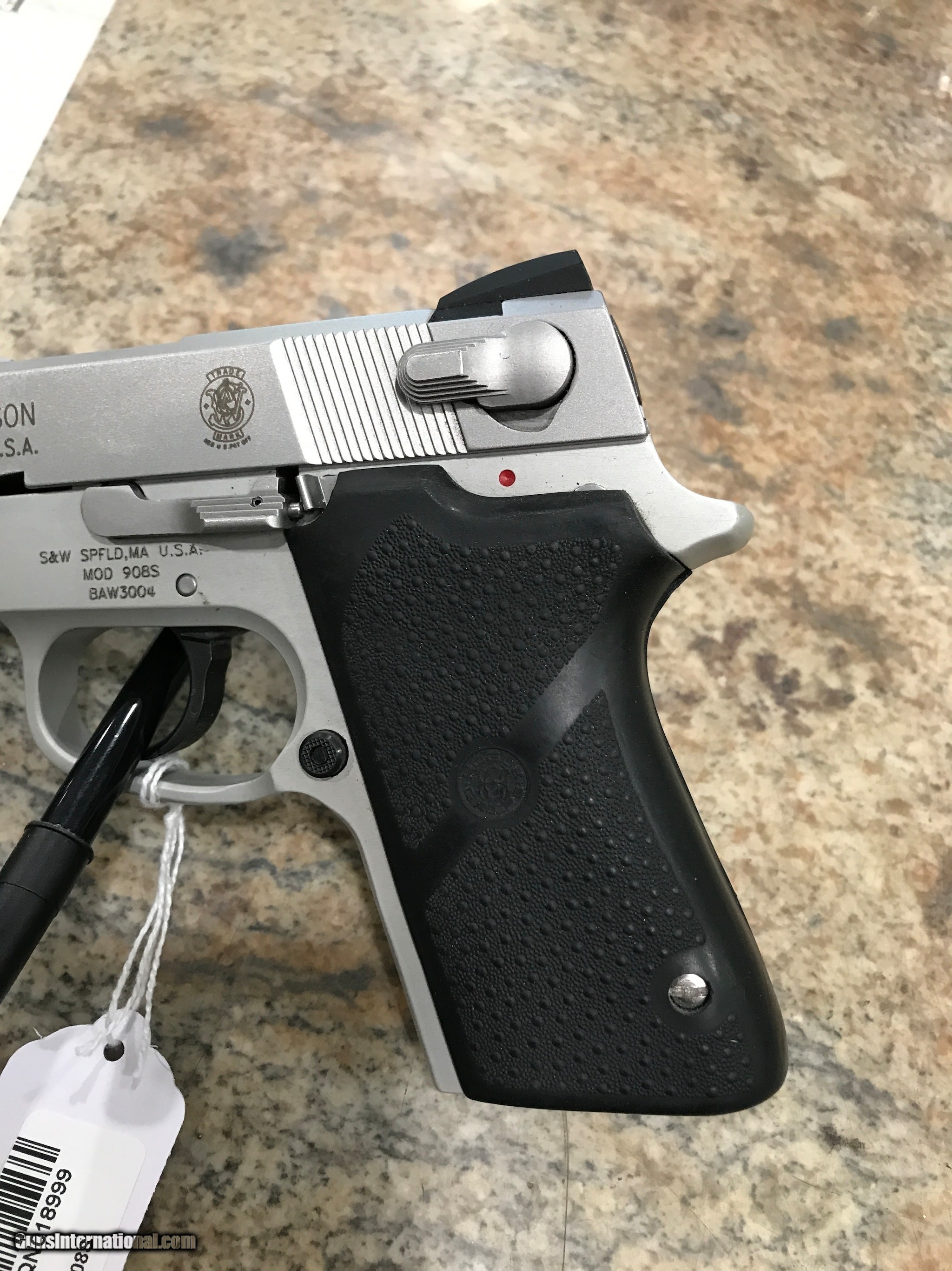 Description: Guns Listing ID: 1125165 Good condition Used gun Rubber grips Left side holster SOLD Manufacturer: SMITH & WESSON Model: 908S Caliber Info: 9MM LUGER (9X19 PARA) Condition: Used - Non-Certified Barrels: 4 BARREL Finish: STAINLESS |