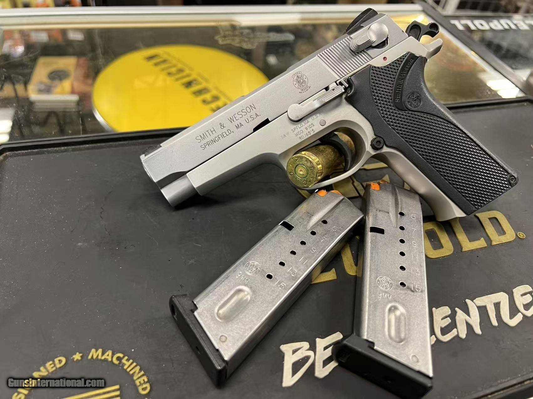 Description: Guns Listing ID: 501225 Condition: Good The Smith & Wesson Model 910S stands as a testament to the ingenuity and reliability that have defined the S&W brand for decades. This 9mm semi-automatic pistol, part of the value-driven 900 series introduced in the late ‚‚90s, is the perfect blend of performance and affordability. Its stainless steel finish not only offers a sleek appearance but also ensures durability and corrosion resistance, making it an ideal choice for both collectors and active users. Currently in good condition, this particular Model 910S exhibits minimal frame wear and minor pitting on the slide, indicative of responsible prior use. The bore is clean and well-maintained, with good rifling that promises accuracy and consistency in shooting. This sale includes two 15-round magazines, providing you with ample firepower for target practice or personal protection. The Model 910S is designed with a DA/SA action, providing the flexibility of a double-action first shot, followed by single-action for subsequent rounds. This mechanism not only enhances safety but also improves precision, making it suitable for defense and sport shooting. Originally designed during the era of the Federal Assault Weapons Ban, its 15+1 capacity was a significant feature, making it a compliant yet highly effective option for law enforcement and civilian use alike. Whether you are a newcomer to the world of firearms or a seasoned enthusiast, the Smith & Wesson 910S offers a robust and versatile addition to your collection. Its ergonomic design ensures comfortable handling and easy concealment, while the textured black plastic grips provide a secure hold. With fixed sights featuring a white dot front and two-dot rear, acquiring your target is straightforward and efficient. Don‚‚t miss the opportunity to own a piece of Smith & Wesson history with the Model 910S. Its combination of reliability, performance, and classic design make it a standout choice for anyone seeking a versatile 9mm handgun. Specifications Item Type: Semi Auto Pistols Manufacturer: Smith & Wesson (S&W) Model: 910S Caliber: 9mm Luger (9x19 Para) Overall Condition: Good condition Specific Condition Details: Minimal frame wear, minor slide pitting Bore Overall Condition: Good - Clean Bore Rifling: Good Rifling - Intact, well-defined lands and grooves Action: DA/SA Capacity: 15+1 Barrel Length: 4\" Finish: Stainless Steel Stock/Grips: Textured black plastic Sight/Optic: White dot front, fixed 2 dot rear What’s Included: 2 15 round magazines Magazines Included: 2x 15rd ma SOLD Manufacturer: SMITH & WESSON Model: 910S Caliber Info: 9MM LUGER (9x19 PARA) Condition: Used - Non-Certified Barrels: 4 Action: SEMI AUTOMATIC Finish: stainless steel |
