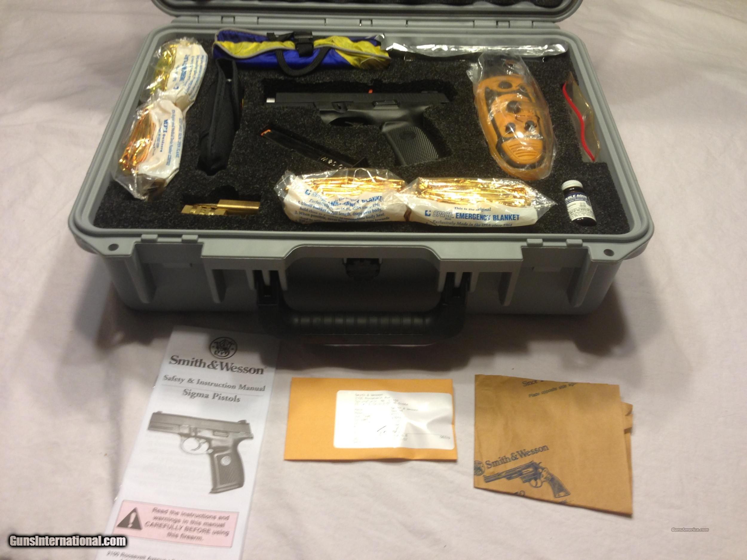 Description: Smith & Wesson Allied Forces 40VE Disaster Ready Kit. The kit includes, One Smith & Wesson SW40VE Allied Forces Pistol, Hand Crank Radio w/Flashlight, Pocket Survival Pack, First Aid Kit, Emergency Food Rations for 4, Water-Proof Document Bag, Water Purification Tablets, Multi-Too w/Case, 4 Space Blankets, and finally the Pelican Storm Case to hold everything. The storm case is water proof. Case also comes with two exterior case locks. This really is a pretty neat set up. Shipping cost is $45.00. Price is $650.00 OBO This item is New Old Stock, in perfect never fired condition. No California Sales, also please know your state gun law and if you are allowed to own this gun. For more pictures or info please email or text (405) Two Two 6-3974 SOLD |