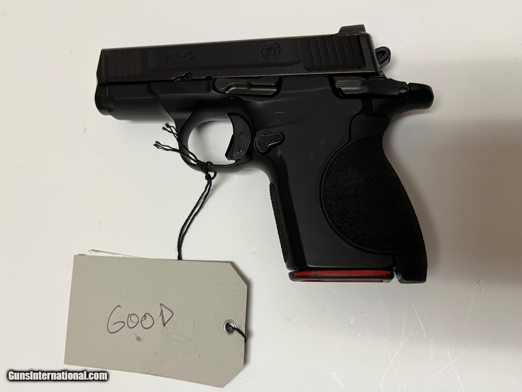 Description: Guns Listing ID: 1158335 NOT CALIFORNIA COMPLIANT!!! SELLING USED RANGE GUN 1 OEM STEEL MAG 10RNDS Micro-Compact Semi Automatic Handgun Single Action 9mm Luger 3.1\" Barrel Metal 3-Dot Sights Ambidextrous Manual Thumb Safety Ambidextrous Elongated Slide Stop Reversible Magazine Release EZ Tab Integration on the Slide for Simpler Racking Stainless Steel Slide and Barrel with Armornite Finish Aluminum Alloy Frame Black Finish Overall Length: 6.1\" Weight: 19.5 oz SOLD Manufacturer: SMITH & WESSON Model: CSX 9MM Caliber Info: 9MM LUGER (9X19 PARA) Condition: Used - Non-Certified Barrels: 3.1 BARREL Finish: MATTE BLACK |