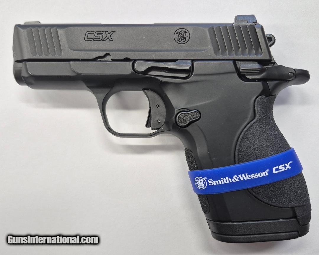 Description: Guns Listing ID: 591665 Used Smith & Wesson CSX. Comes with original box and 2 magazines. General Manufacturer Product Information The 9mm Smith & Wesson CSX pistol is a single-action, aluminum frame semi-automatic pistol. Interchangeable textured backstraps, including small and extra small sizes for better concealability. Ambidextrous manual thumb safety and elongated slide stop. Chambered ejection ports to help ensure no snags when drawing from a holster. - CALIBER: 9MM - MAGAZINE: (2) 10 round and 12 round capacity - BARREL: 3.1\", 1:10\" Twist - SIGHTS: Adjustable White 3-Dot - TRIGGER: Flat faced with integrated safety - GRIPS: Interchangeable backstraps - FINISH: Armornite corrosion resistant Read More: Guns CSX Review UPC 022188885200 Action SINGLE ACTION Barrel Length 3.1\" BARREL Caliber 9MM LUGER (9X19 PARA) Capacity 12 ROUNDS Finish MATTE BLACK Frame Material ALUMINUM ALLOY Receiver Finish STAINLESS/BLACK Slide Material STAINLESS STEEL Weight 1.2 LBS. Manufacturer: SMITH & WESSON Model: CSX 9MM Caliber Info: 9MM LUGER (9X19 PARA) Condition: Used - Non-Certified Barrels: 3.1" BARREL Action: SINGLE ACTION Finish: MATTE BLACK Weight: 1.2 lbs. Price: $449.99 Contact Seller |