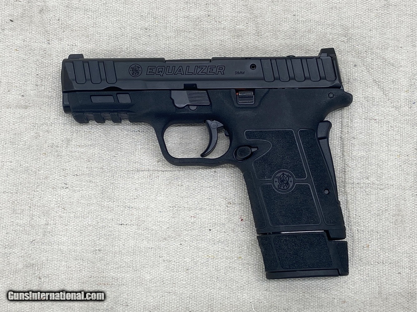 Description: Guns Listing ID: 525893 Smith & Wesson Equalizer chambered in 9mm. Includes factory box, gun lock, and one 15rd magazine. See photos for condition. SOLD Manufacturer: SMITH & WESSON Model: EQUALIZER Caliber Info: 9MM LUGER (9x19 PARA) Condition: Used - Non-Certified Barrels: 3.7" BARREL Action: SEMI AUTOMATIC Finish: black matte |