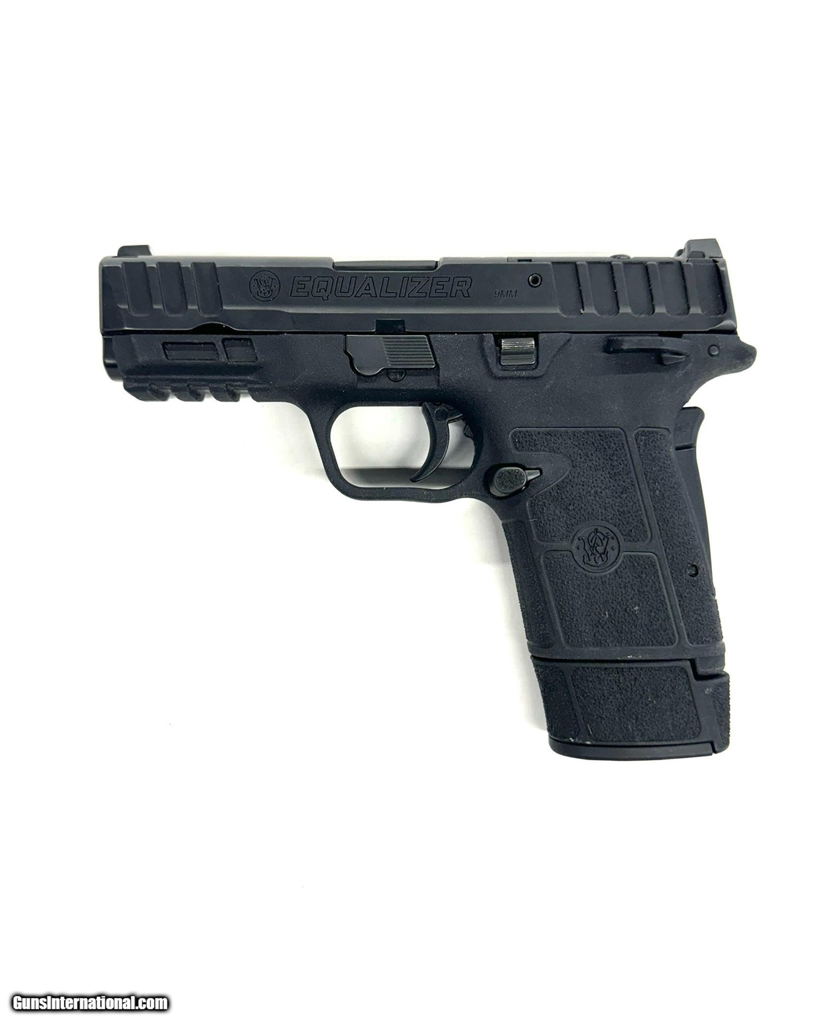 Description: Guns Listing ID: 397863 Smith & Wesson Equilizer chambered in 9mm Luger. Comes with gun and magazine only. Caliber: 9mm Luger Capacity: 15 + 1 Rounds Magazine(s): 1 Barrel: 3.5\" Case/box: None SOLD Manufacturer: SMITH & WESSON Model: EQUILIZER Caliber Info: 9MM LUGER (9X19 PARA) Condition: Used - Non-Certified Barrels: 3.5 BARREL Action: SEMI AUTOMATIC Finish: BLACK Weight: not specified |