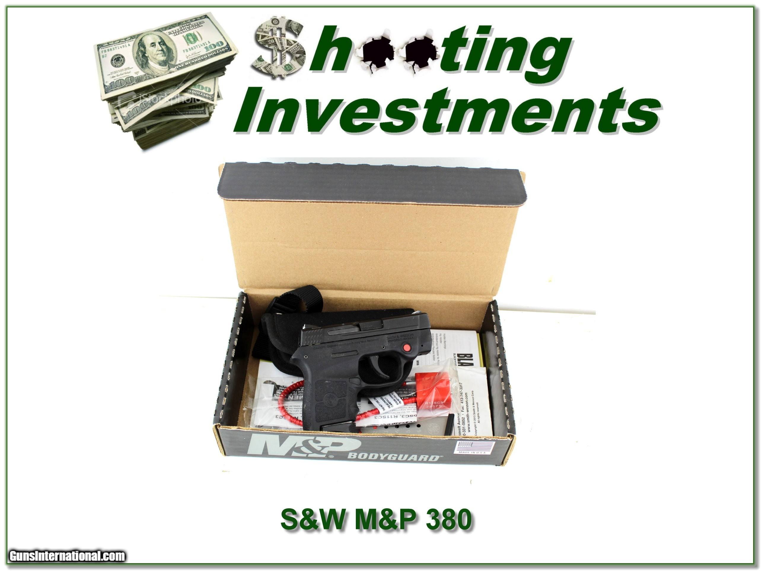 Description: This is a like new condition Smith & Wesson Bodyguard in 380 ACP. It has the laser sight and comes with holster as seen. It’s in the original box with 2 magazines and papers. I am selling this one on consignment and as such lay-a-way can’t be used. It does of course have the standard 3-day inspection. Shipping and insurance is $39. Please email me with any questions or larger pictures. (Consign your quality firearms with Shooting Investments for only 12%! Let me know if you have any you would like to sell!) 23-0726 Payment: Payment is by Money Order, Cashier’s Check or Personal Check. I can now also accept Credit Cards (MasterCard, Visa, Discover & American Express) with a 3% convenience fee. Shipping: The shipping charge will be listed in each description. It is $49 for most firearms. Some heavy guns or those insured for over $2000 will be higher. Shipments to Alaska and Hawaii are higher because air shipment is required. Most firearms are shipped on Tuesday and Thursday and usually in 5 days of receipt of payment. We package all shipments carefully and insure them. Optics are shipped Priority Mail and most other non-firearm shipments are shipped First Class. Returns: Our return policy is simple. If for any reason you are not pleased with your purchase, you may return your item for a full refund of purchase price. Ammunition cannot be returned. It is important to us that you are happy. Guns cannot be fired or dissembled before returning them and they must be returned in the same condition as received. Notification of a return must occur within 3 days of receipt at your dealer. Shipping, convenience and dealer fees are not refundable and are the responsibility of the buyer. Lay-a-way: If needed, we offer a 60 day lay-a-way option on most firearms. It is 1/3 now, 1/3 in 30 days and 1/3 in 60 days. Lay-a-way firearm sales are final and cannot be returned. If a lay-a-way is not completed the first payment cannot be refunded. Consigning your firearms with Shooting Investments: We will help you get top dollar for your firearms. While most local guns shops charge 20% or more, our fee is only 12% with a minimum of $75. At your local gun shop it might take months to sell. Selling on-line provides instant access to thousands of interested buyers. You won’t find any other on-line dealer willing to sell your firearms for only 12% or listing every gun on 3 separate s. Selling through an House typically costs the seller 15% and the buyer an addition 15% (so 30%) and you have to wait several months to sell and longer to receive funds. If properly priced, we will sell your firearms within a few weeks. Send us an email or give us a call and we’ll explain how easy it is for you to get top dollar. Trading: Trading for us is really just buying your gun to re-sell. If you have a gun you want to trade, please email a picture and we will let you know what we can give for it. You will always get more if we sell it for you on consignment. SOLD |
