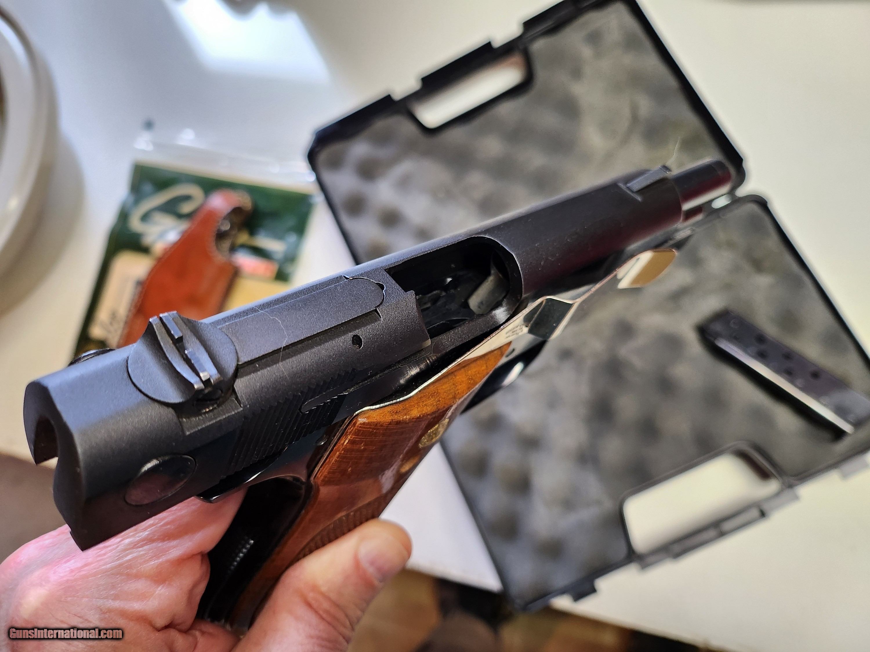 Description: Listed is a nice S&W Mod 39-2 Alloy Double Auto Pistol. This S&W was purchased by me new in the 70's in Niagra Falls, NY. Pistol comes with what is pictured, 2 clips, hard case, belt clip and holster. There is no box, which has been misplaced. SOLD Handgun Caliber: 9mm Federal Manufacturer: Smith & Wesson Model: 39-2 Serial Number: A295560 Barrel Length: 4 in Condition: 98 Metal Condition: 98 Wood Condition: 98 Bore Condition: 100 % |
