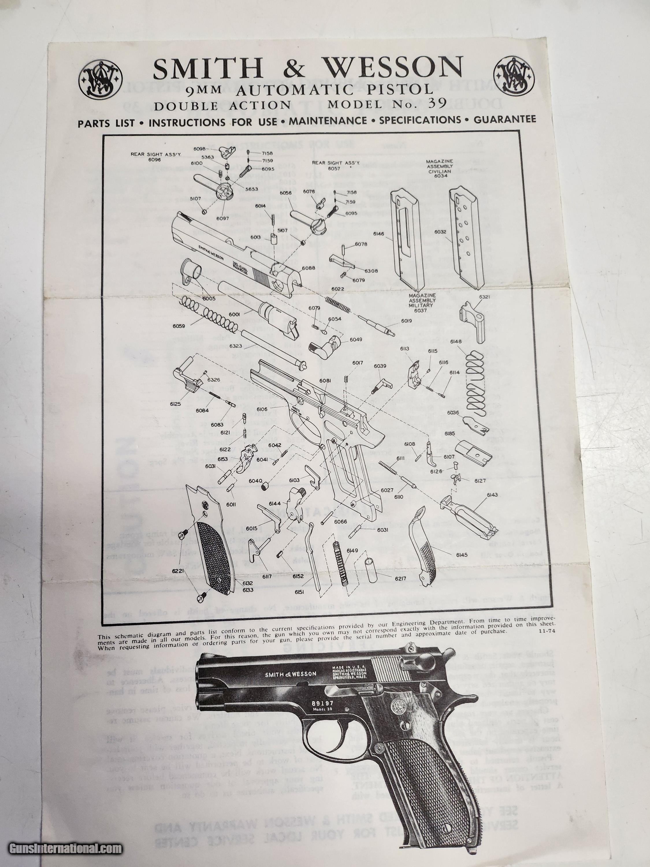 Smith & Wesson Mod 39-2 9 MM Pistol