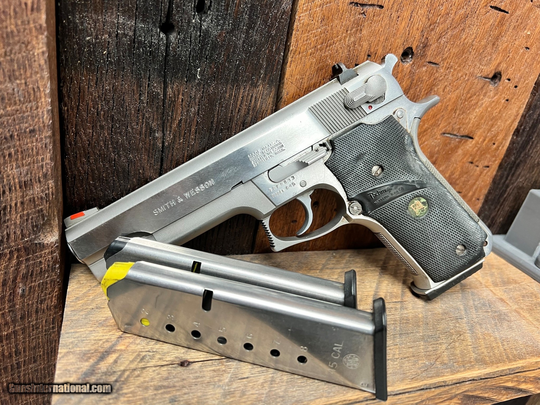 Description: Guns Listing ID: 1207427 SMITH & WESSON MOD 645 45ACP STAINLESS 5\" PISTOL 3- 8RD MAGS THANKS FOR LOOKING. SOLD Manufacturer: SMITH & WESSON Model: MOD 645 Caliber Info: .45 ACP Condition: Used - Non-Certified Barrels: 5 BARREL Finish: STAINLESS |